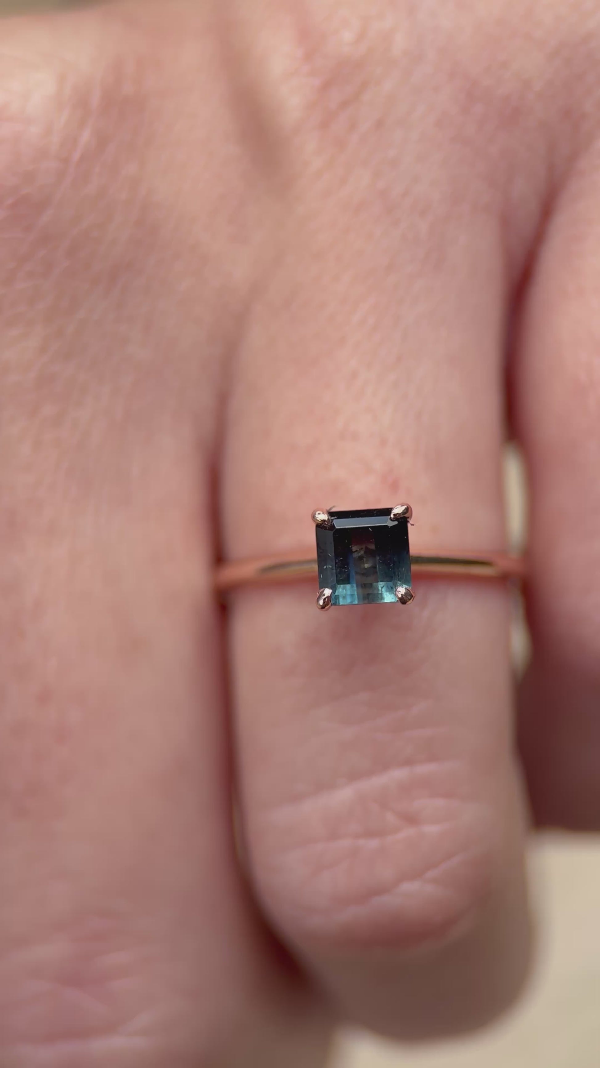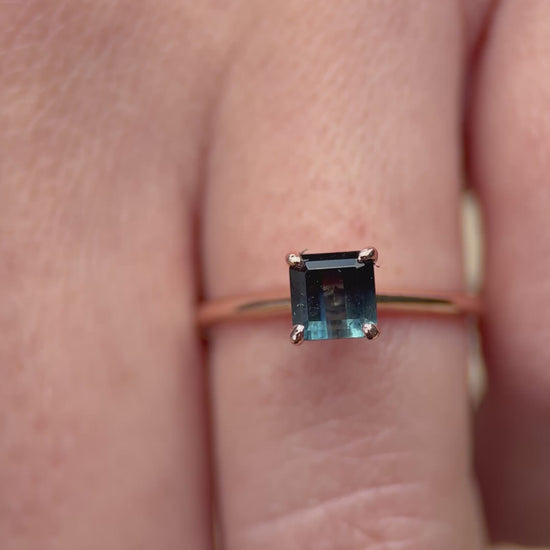 Anillo de Turmalina bicolor corte princesa de .78 cts en oro rosa de 14k.
