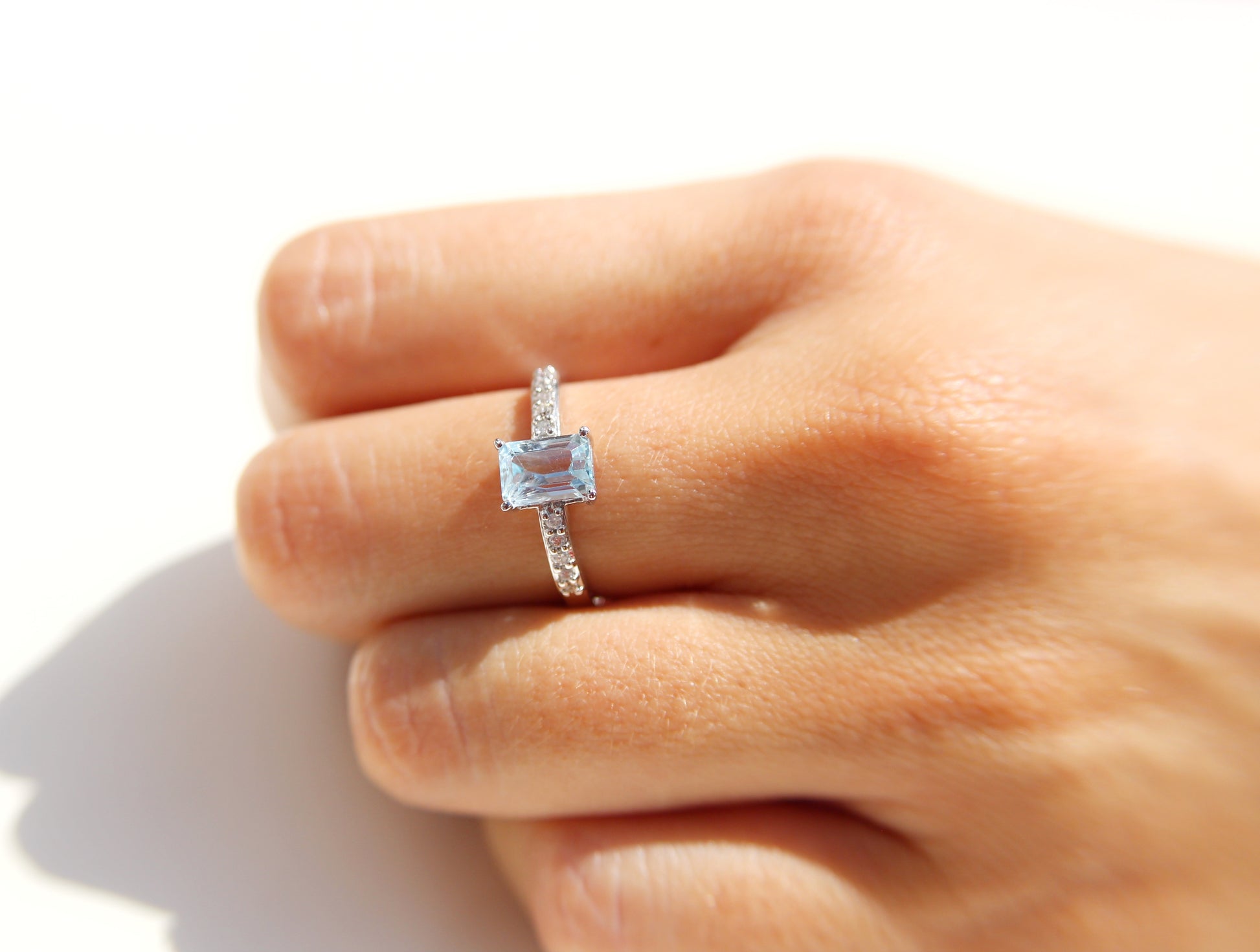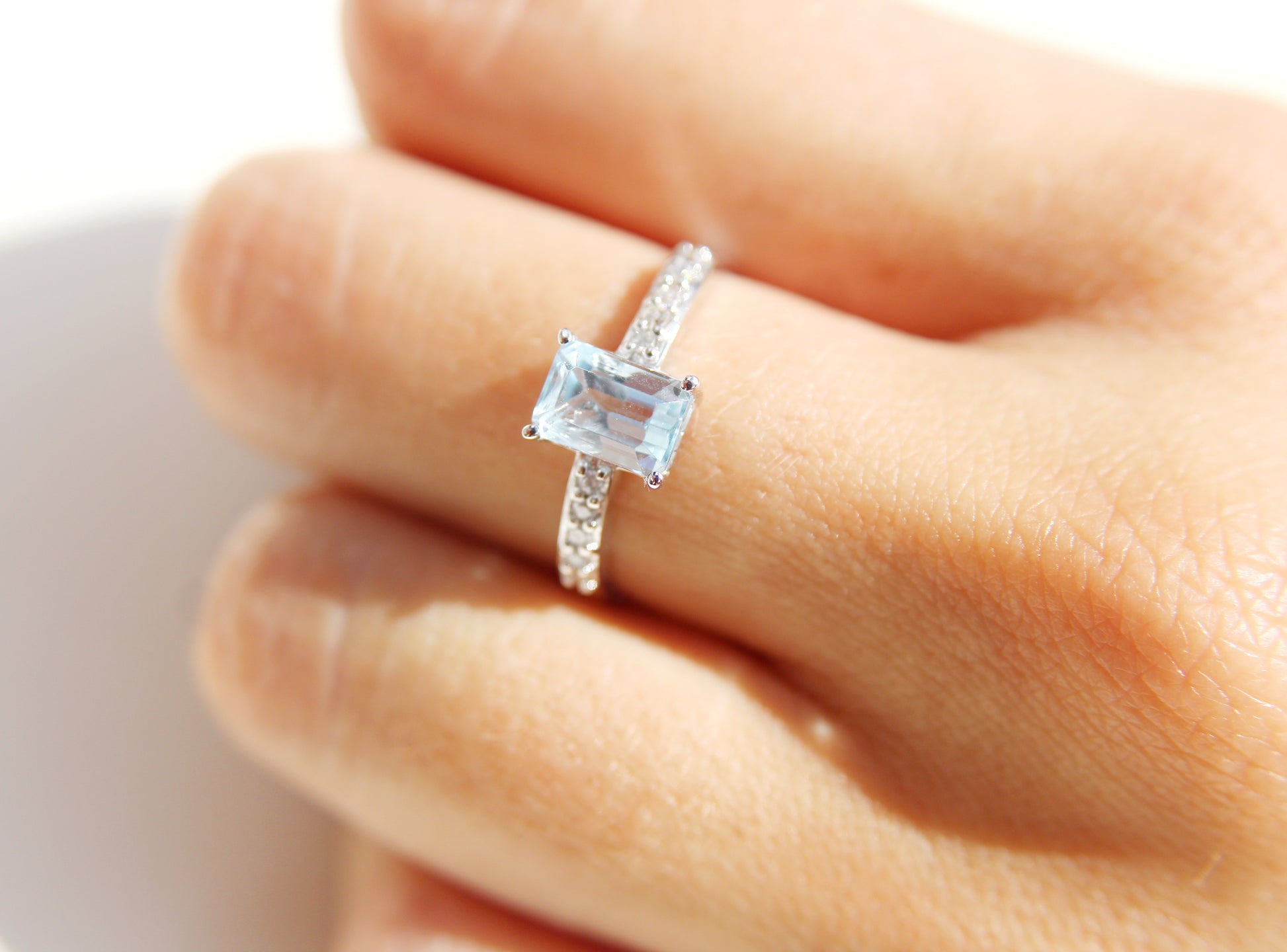 Aguamarina corte baguette 6x4 con pave de .12 cts