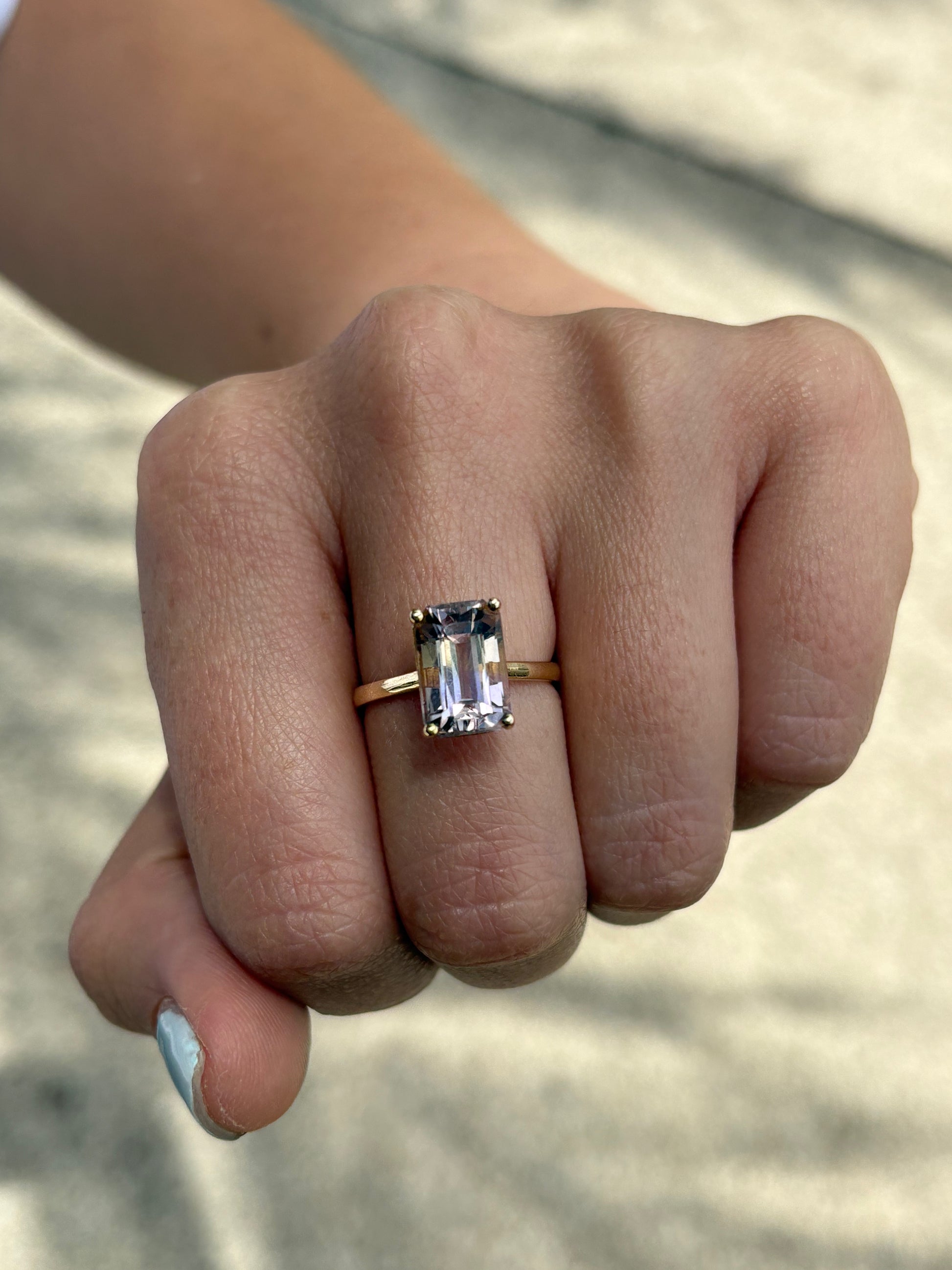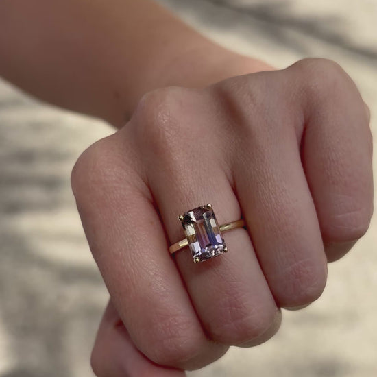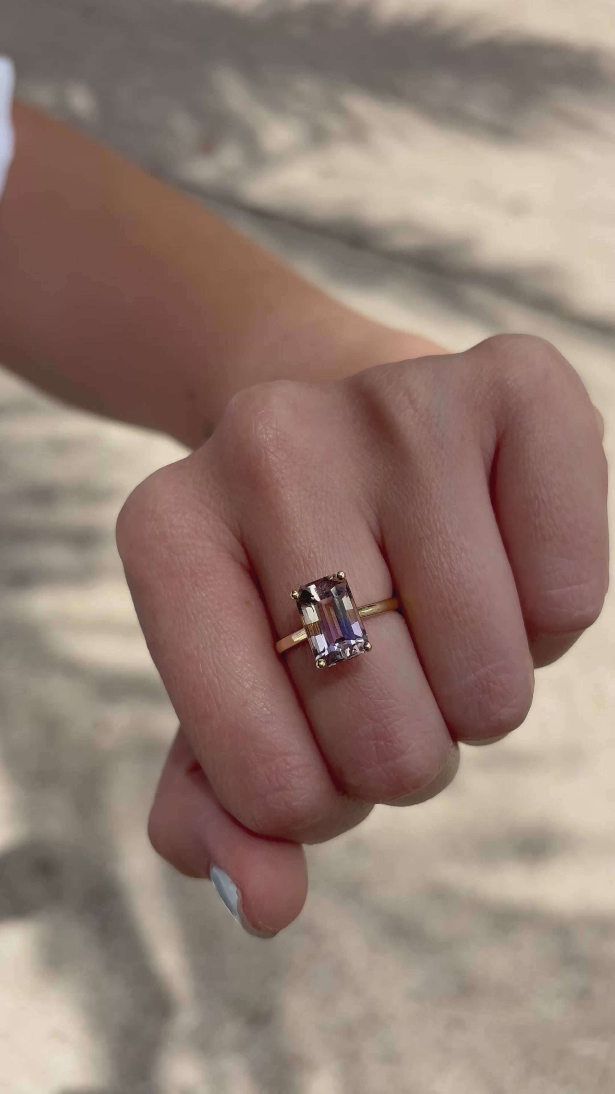 Ametrino corte esmeralda de 4.38 cts en oro de 14k.