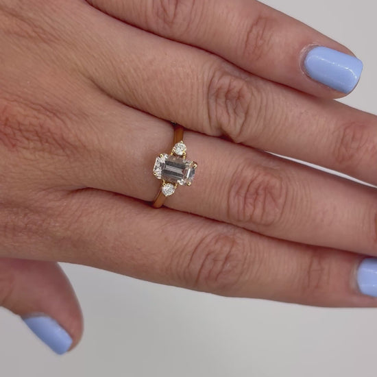 Morganita corte baguette 8x5 mm y .10 cts en diamantes.