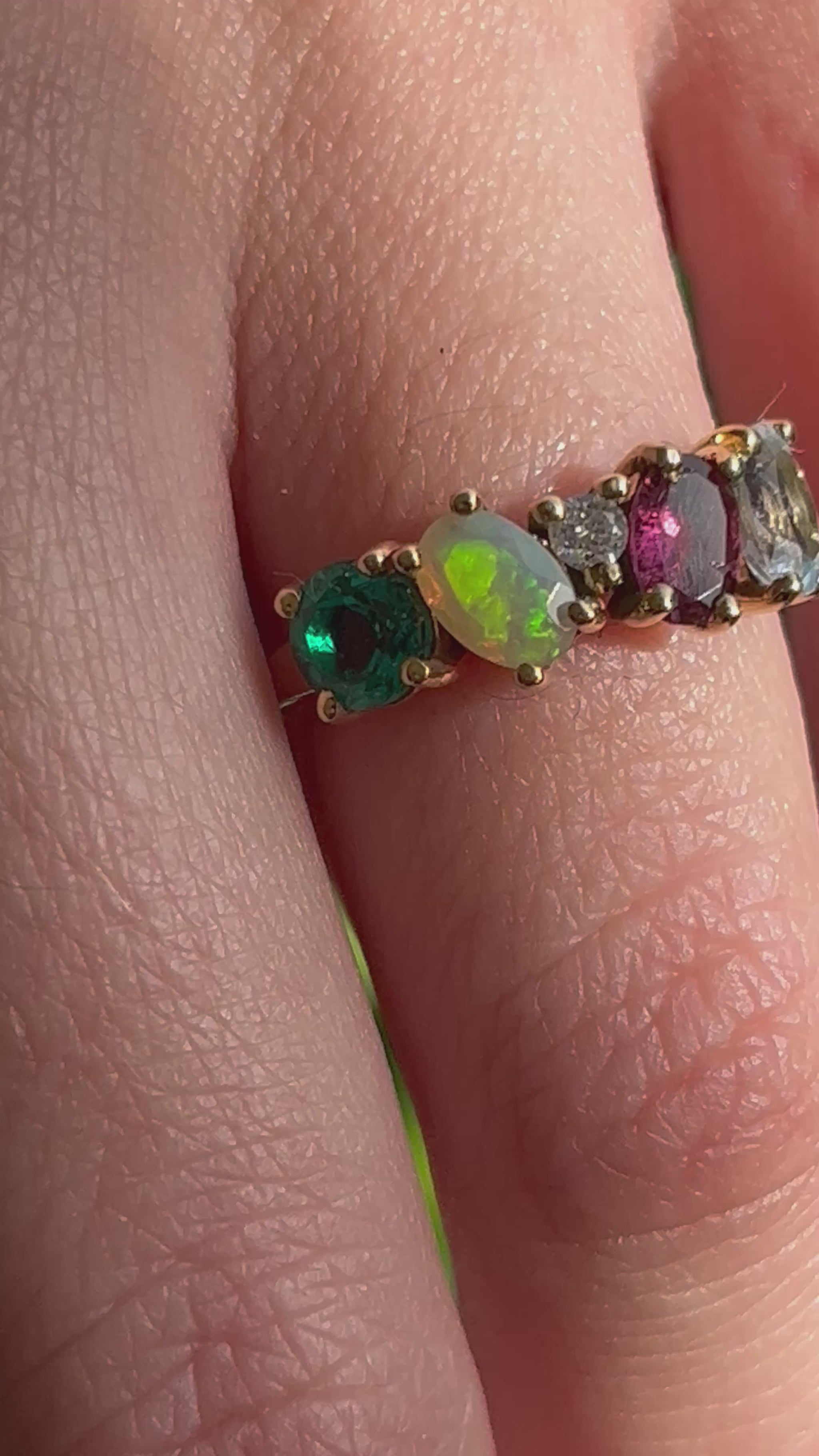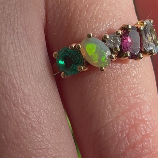Este tipo de anillo es único, diferente e irrepetible para cada persona, ya que lleva las piedras de nacimiento de cada una.