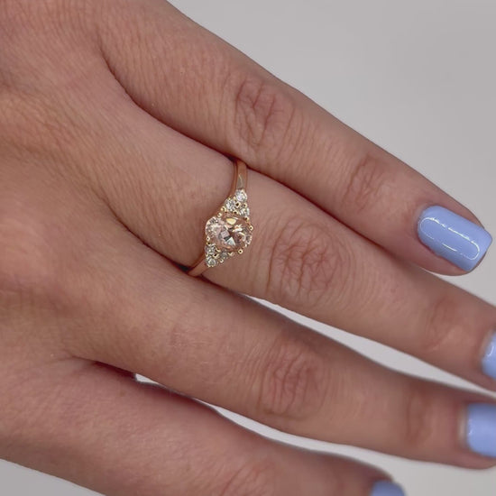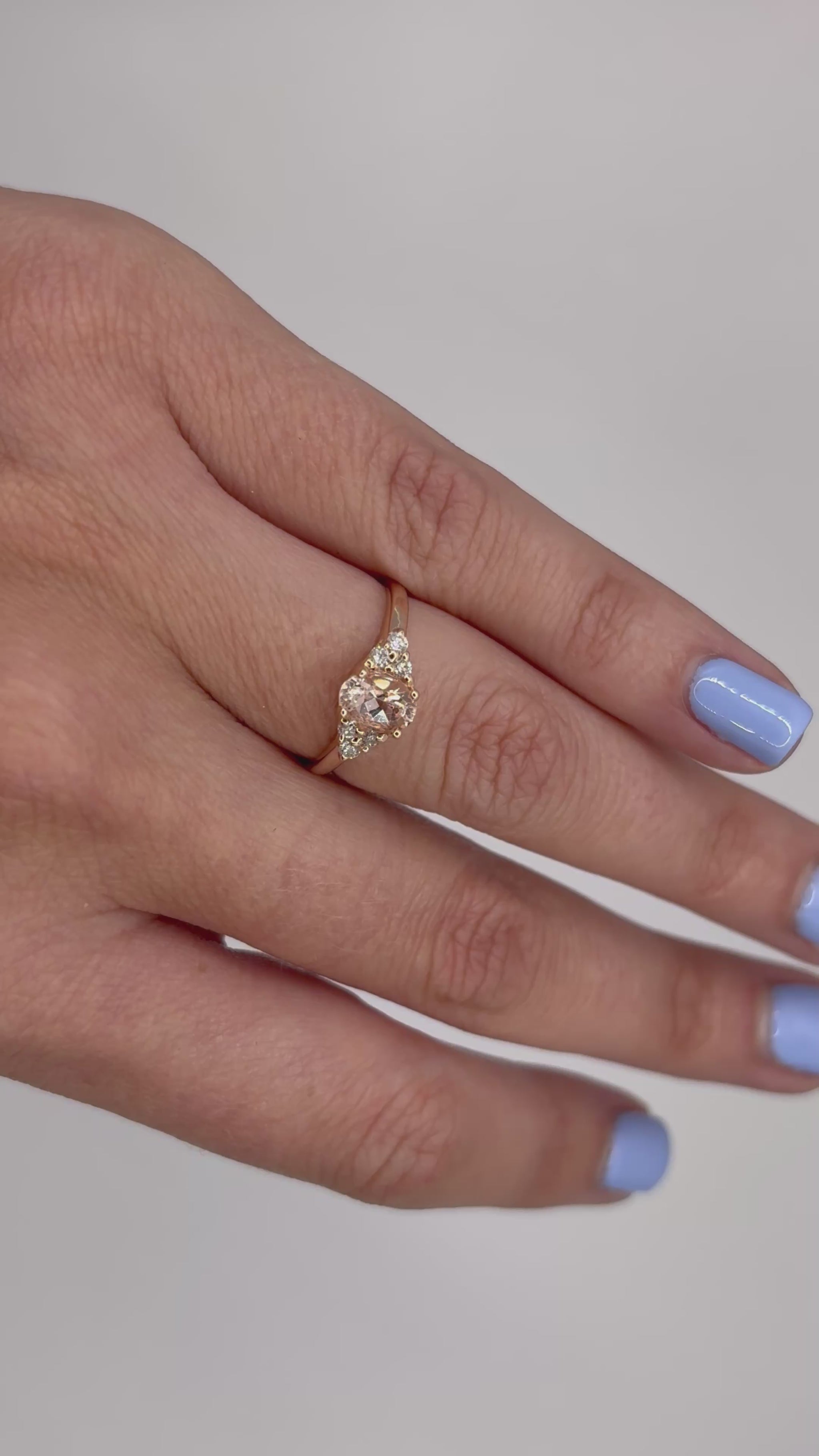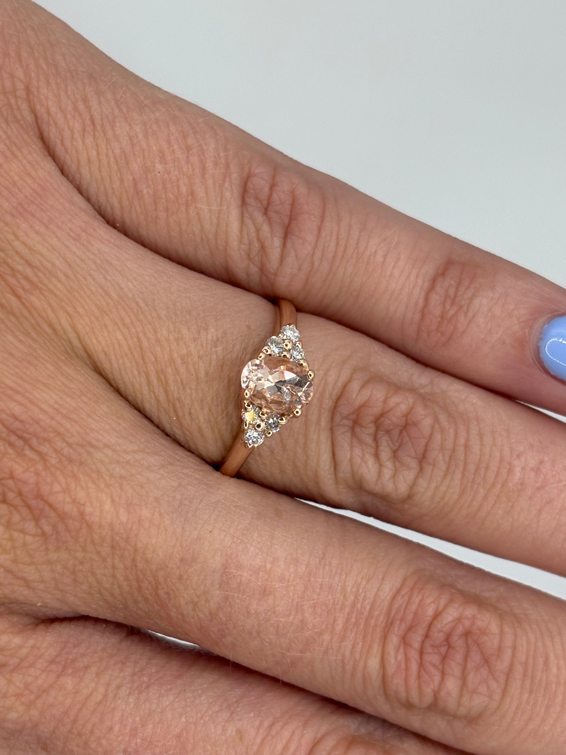 Morganita de 5x7 mm con .18 cts de diamantes en oro de 14k.