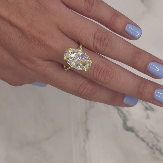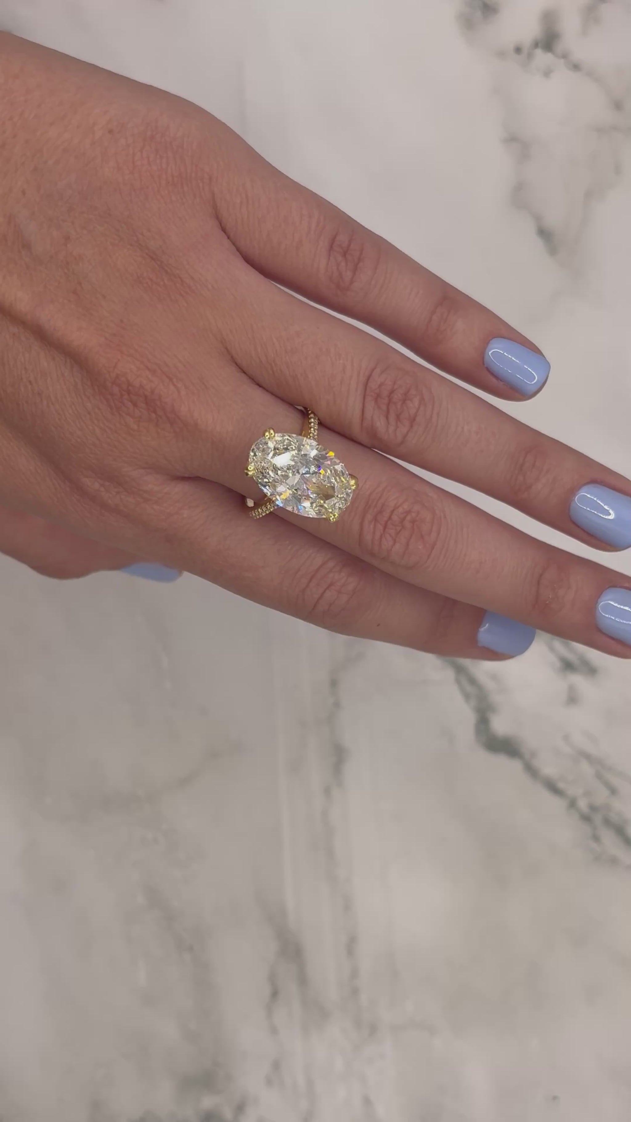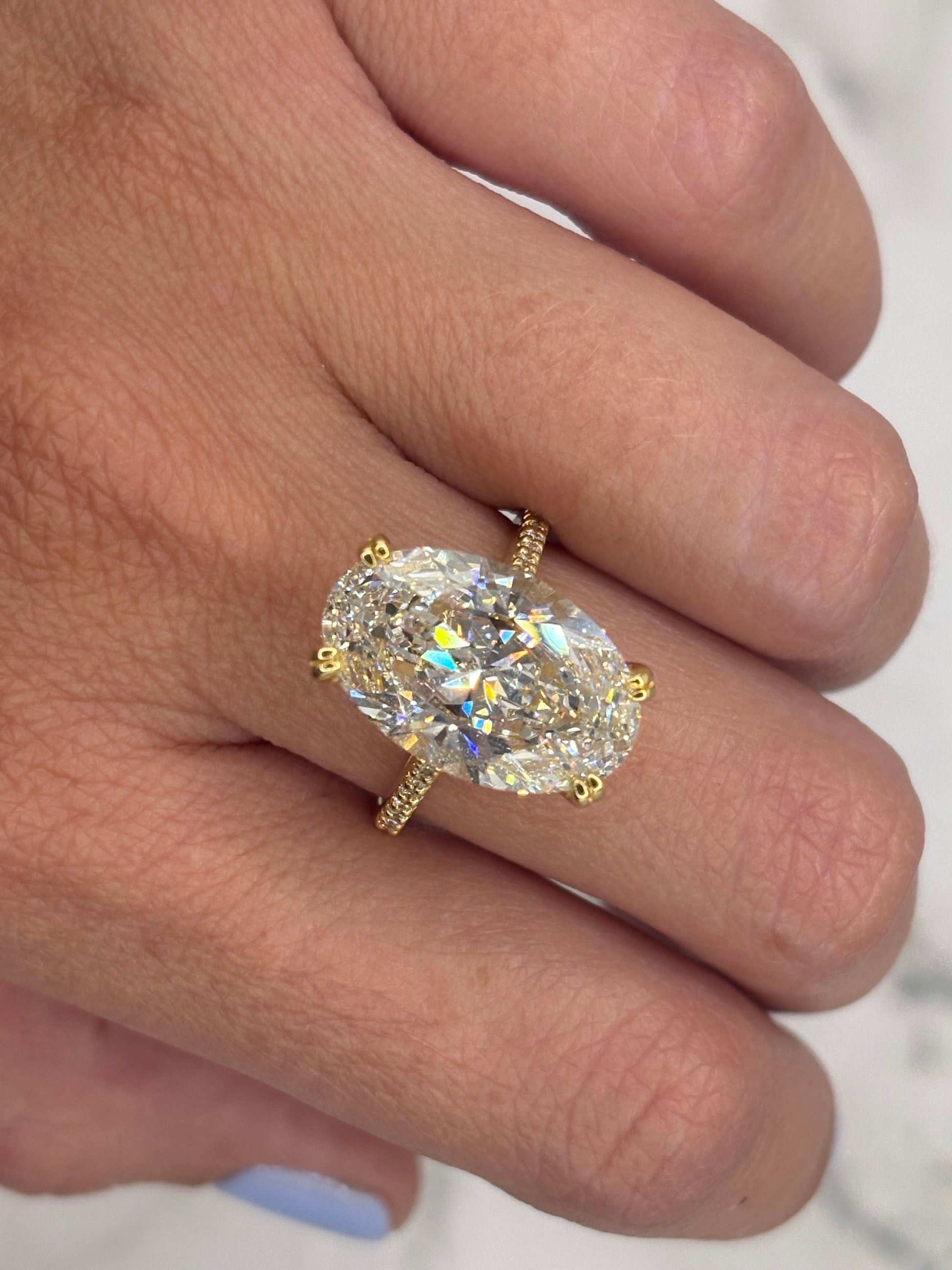 Diamante corte oval Lab grown de 10 Cts, color D/H - VVS1 VVS2 con pavé de diamantes, en oro de 14k.