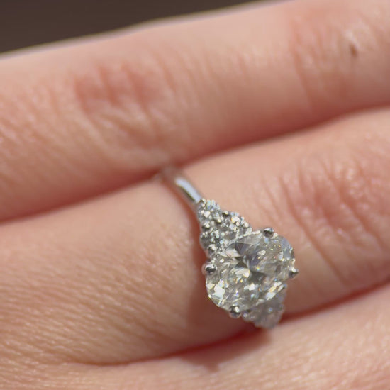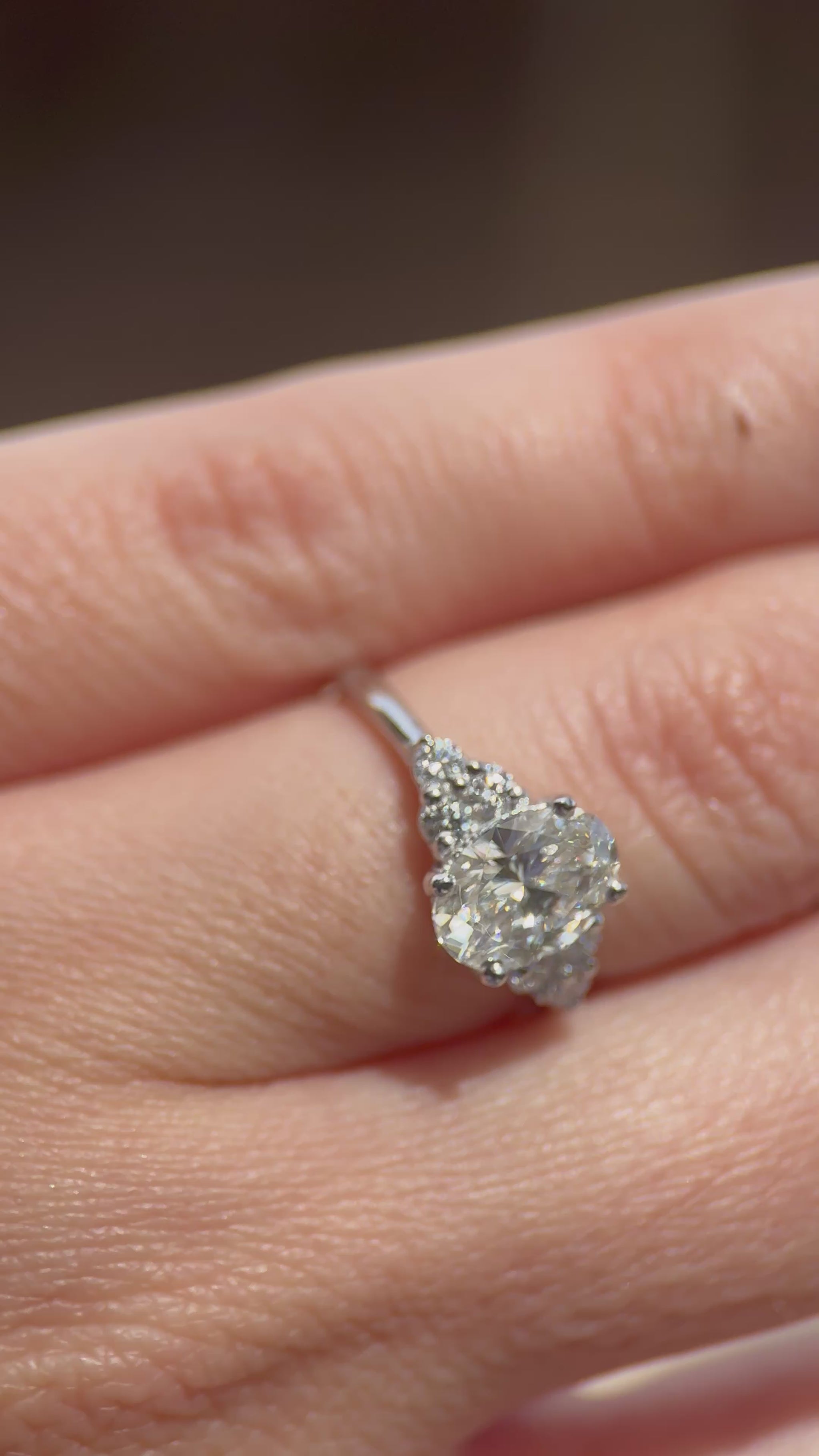 Diamante Lab Grown Certificado de 1.50 Cts corte oval con 6 diamantes naturales de .03 cts c/u.