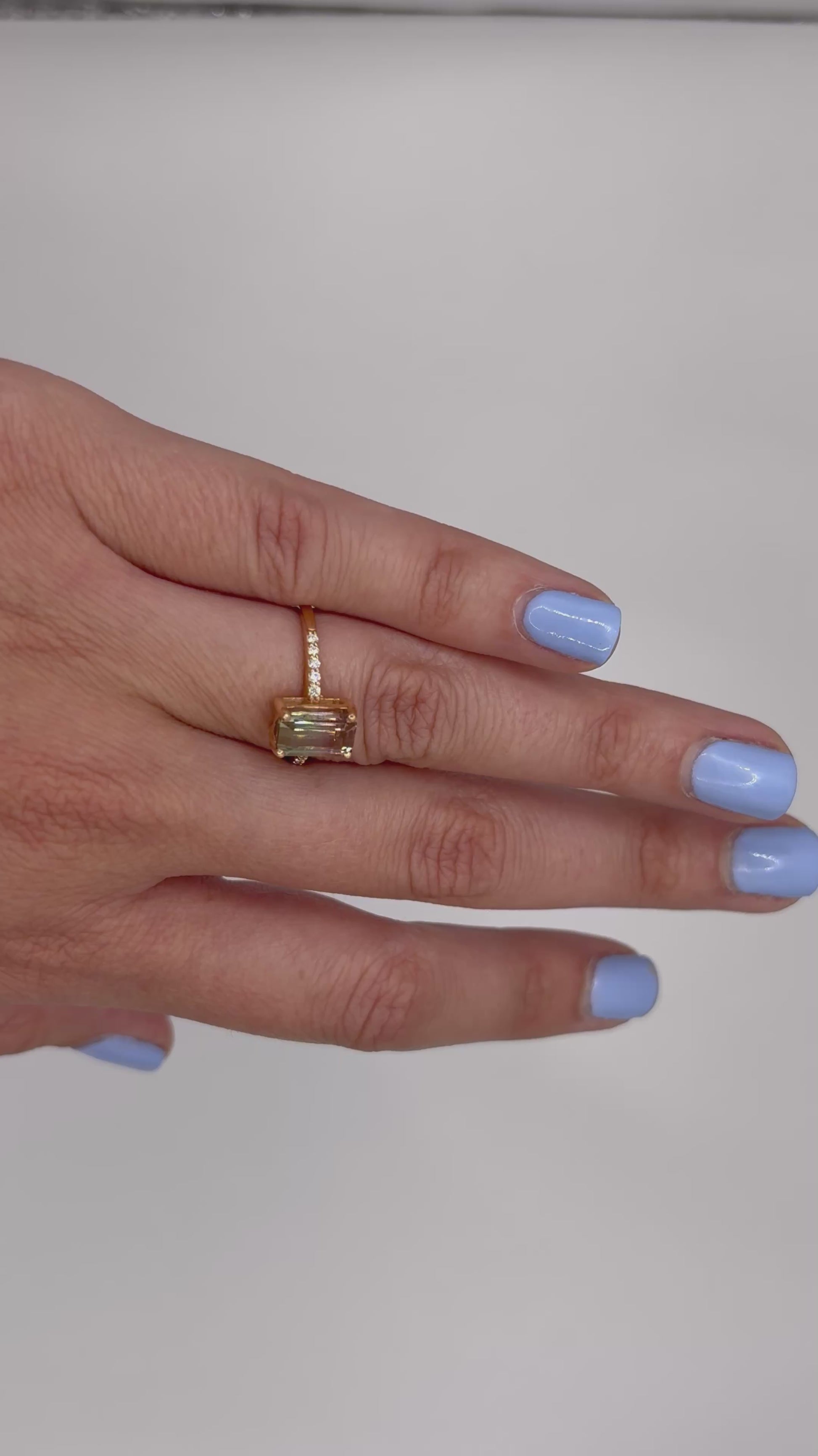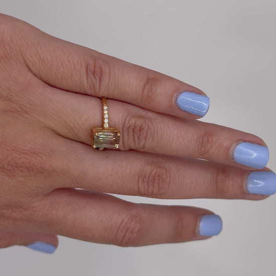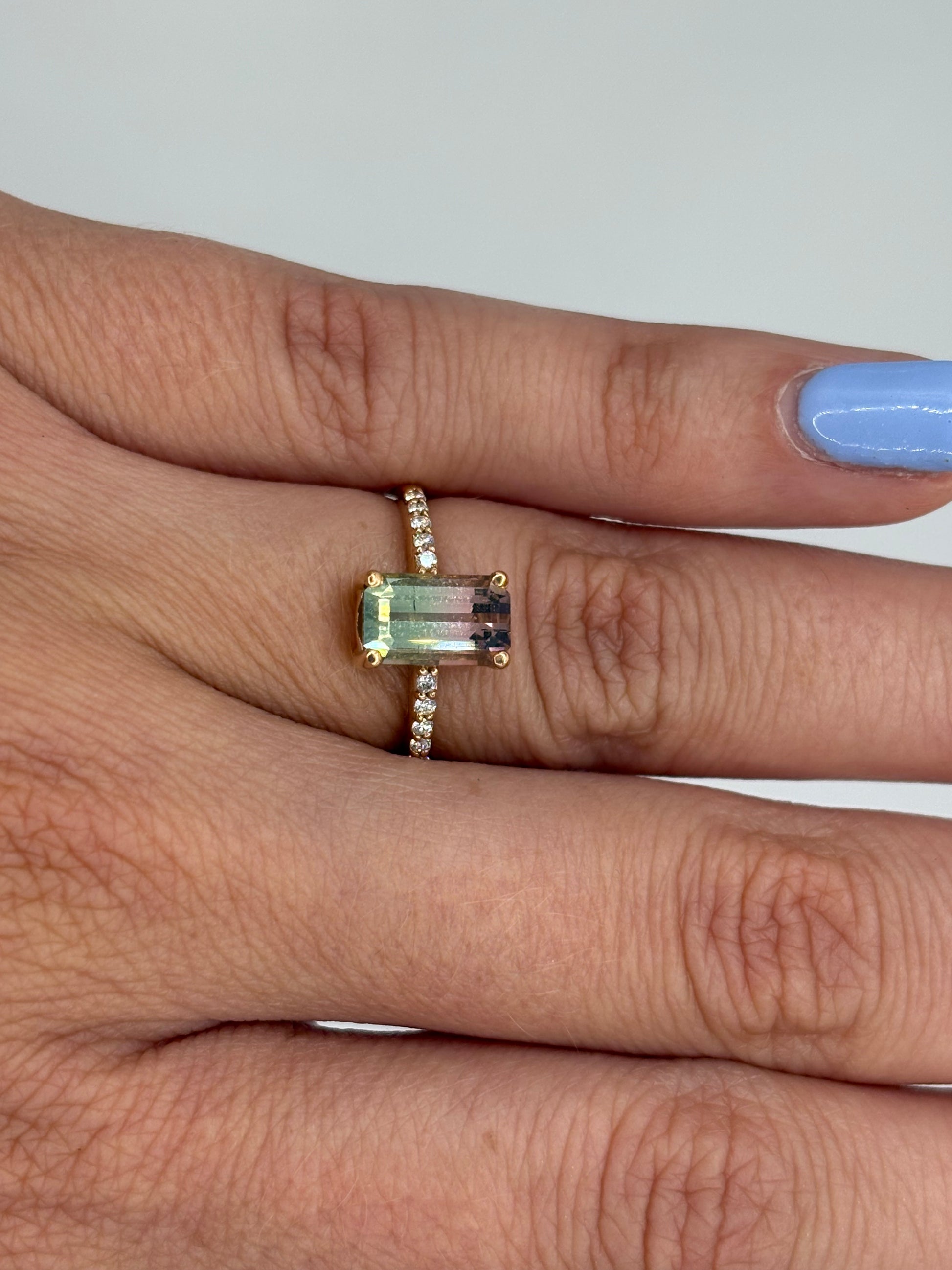 Turmalina Sandía corte baguette 9x6 con pave de .10 cts.