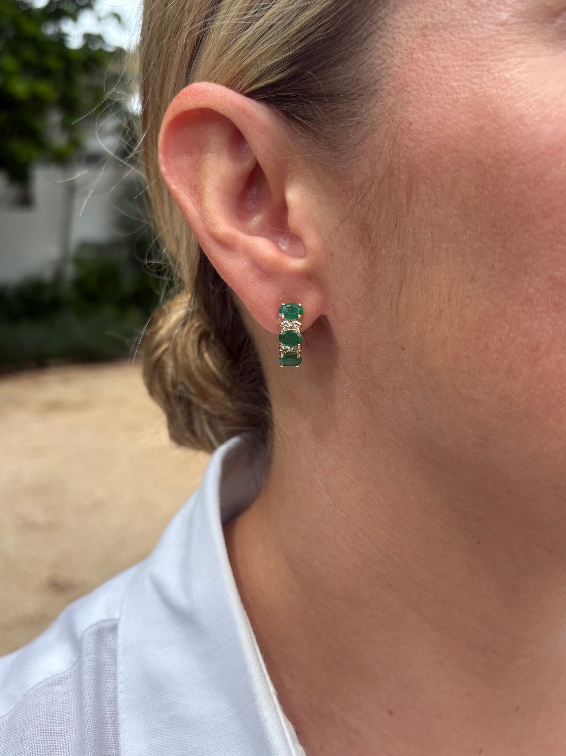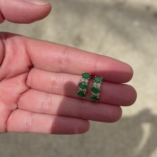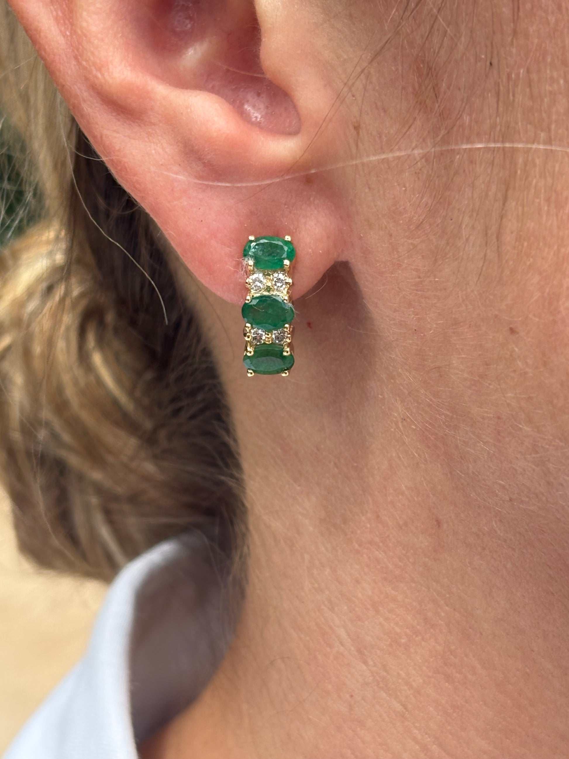 Aretes con 3 ovales 6x4 mm y .12 cts de diamantes en oro de 14k.