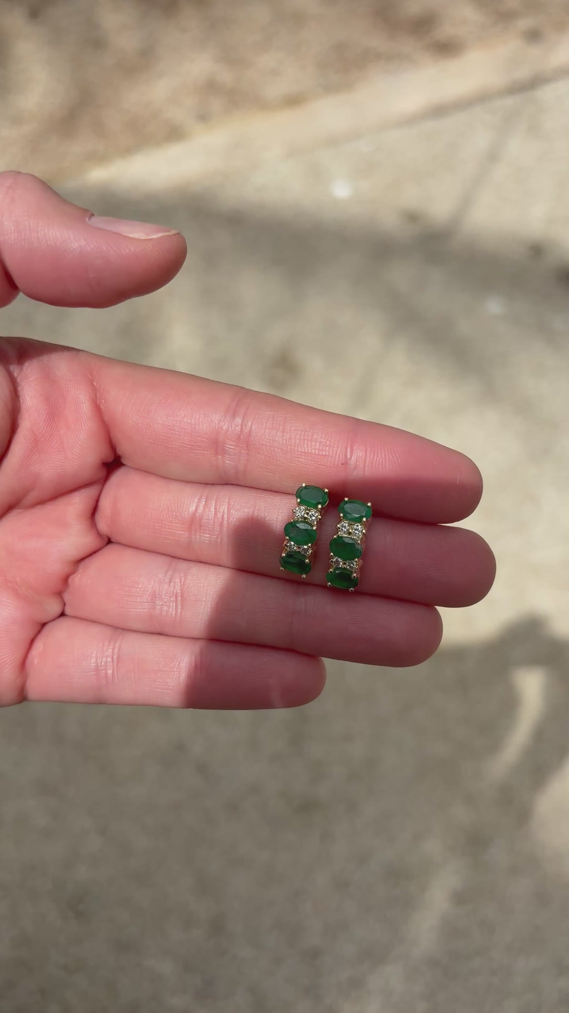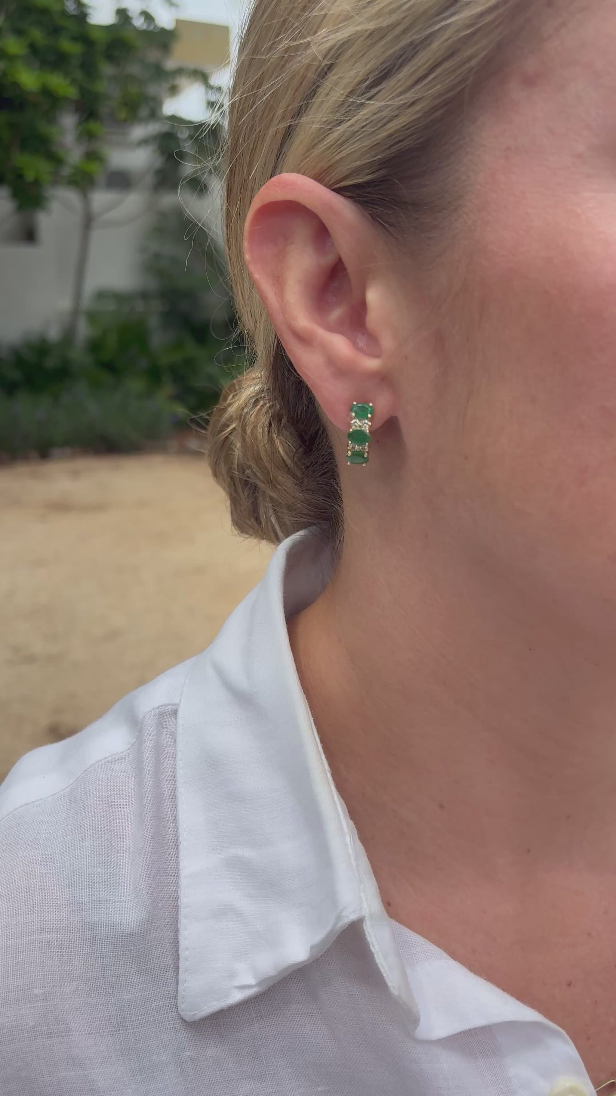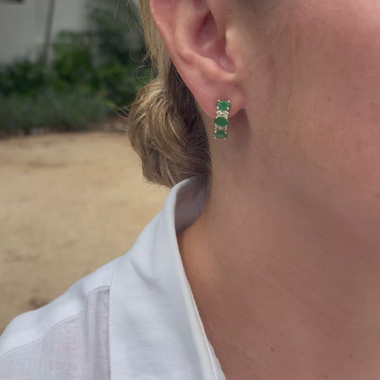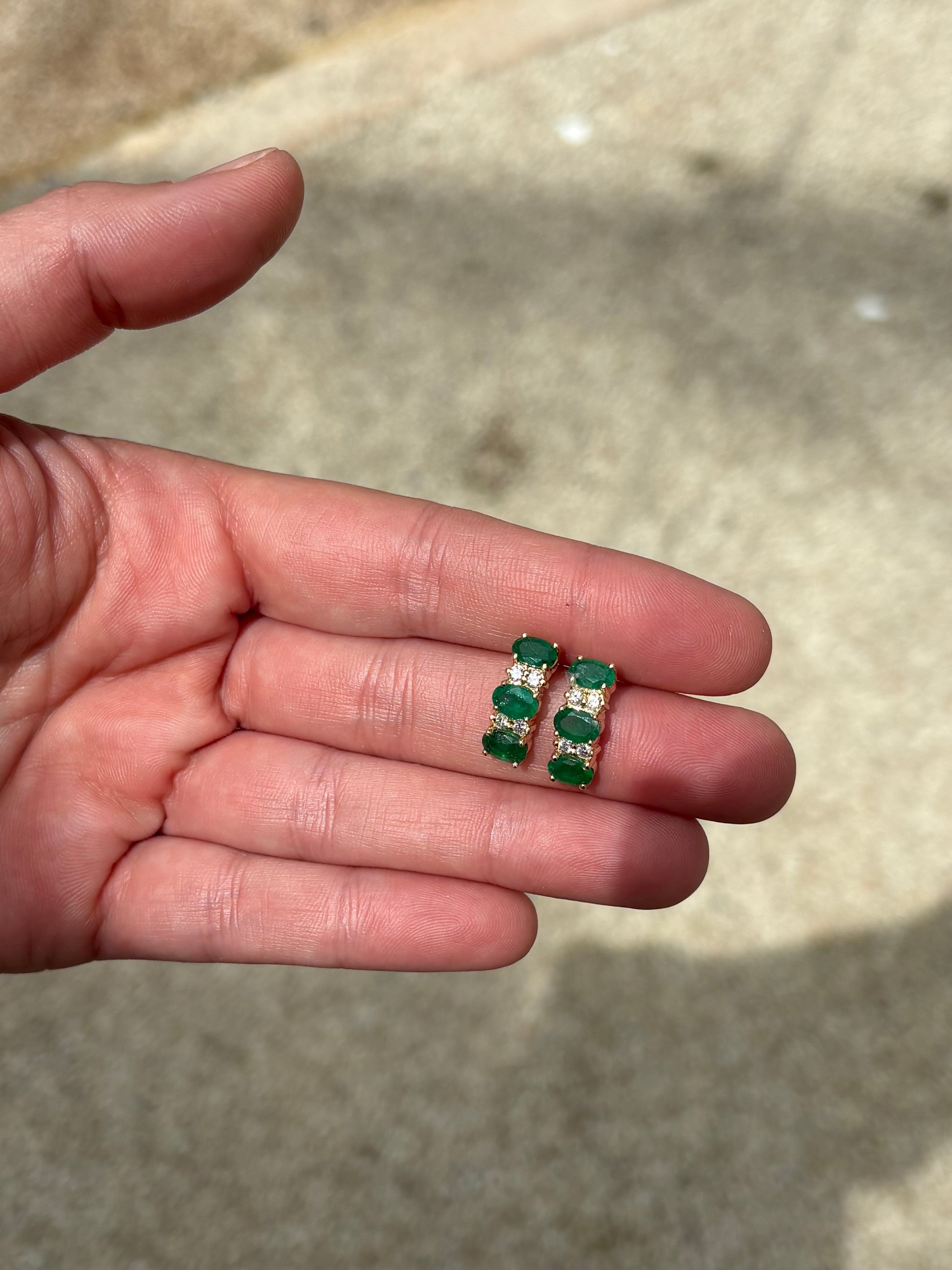 Aretes con 3 ovales 6x4 mm y .12 cts de diamantes en oro de 14k.