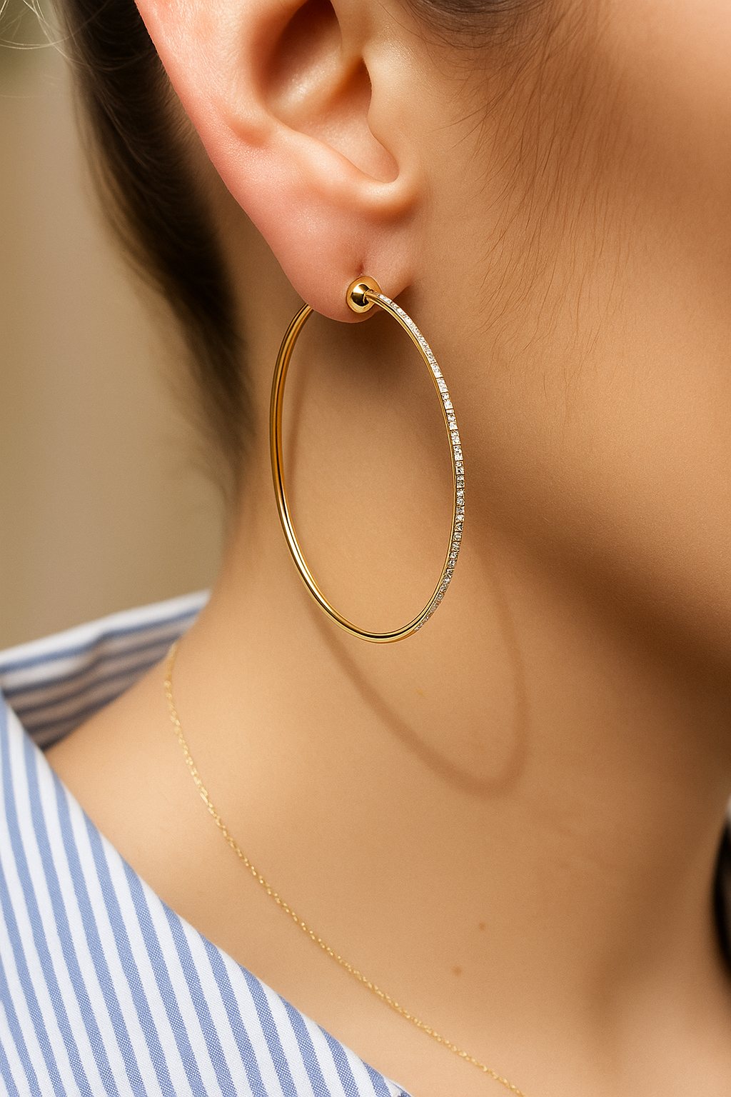 Arracadas tamaño grande con .60 cts en diamantes en oro de 14k.