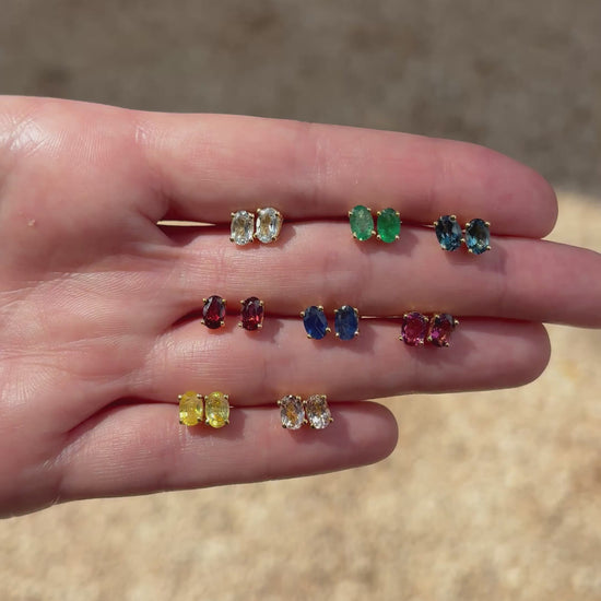 Aretes corte oval 6x4 disponibles en diferentes tonos de piedras montados en oro de 14k.