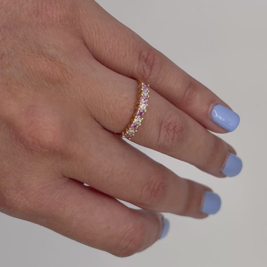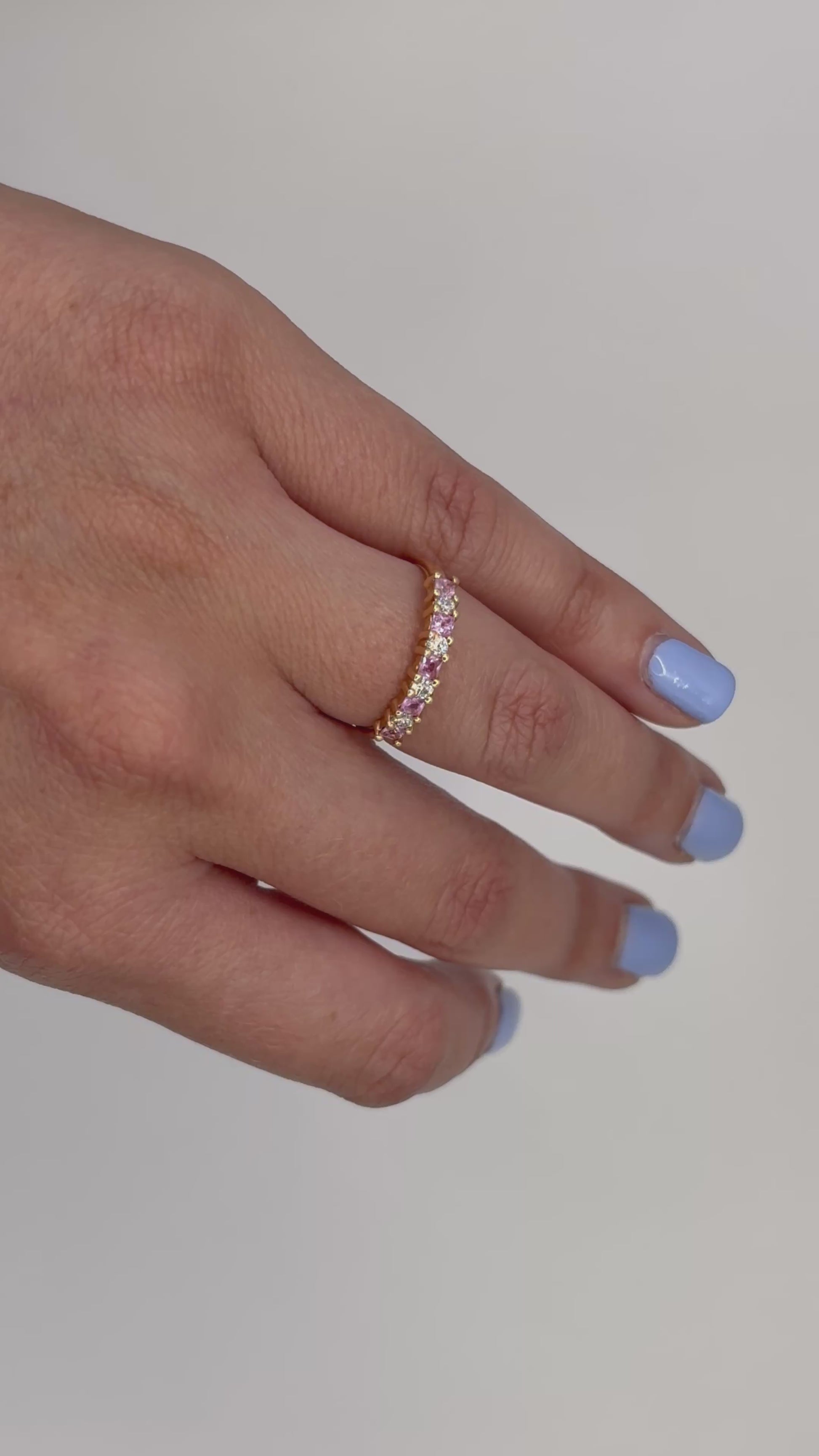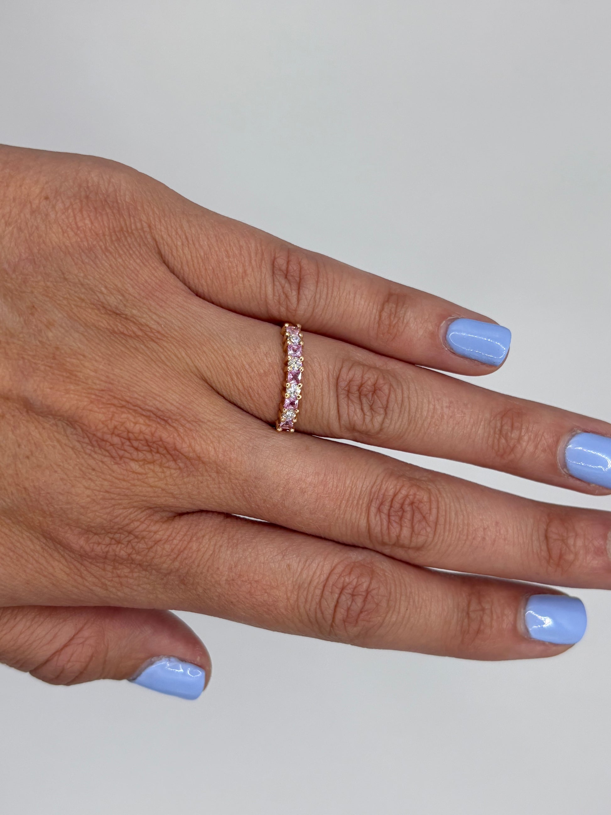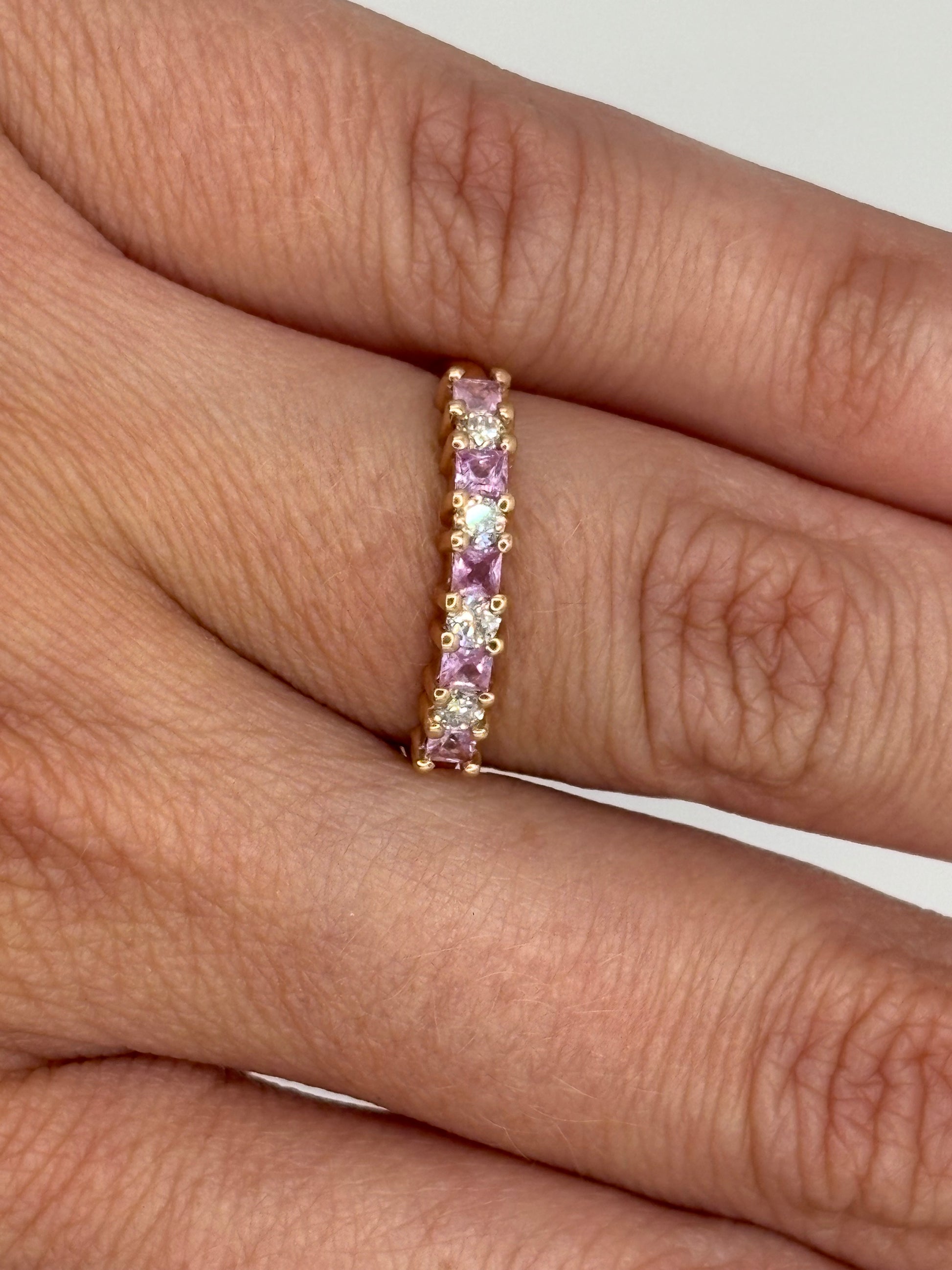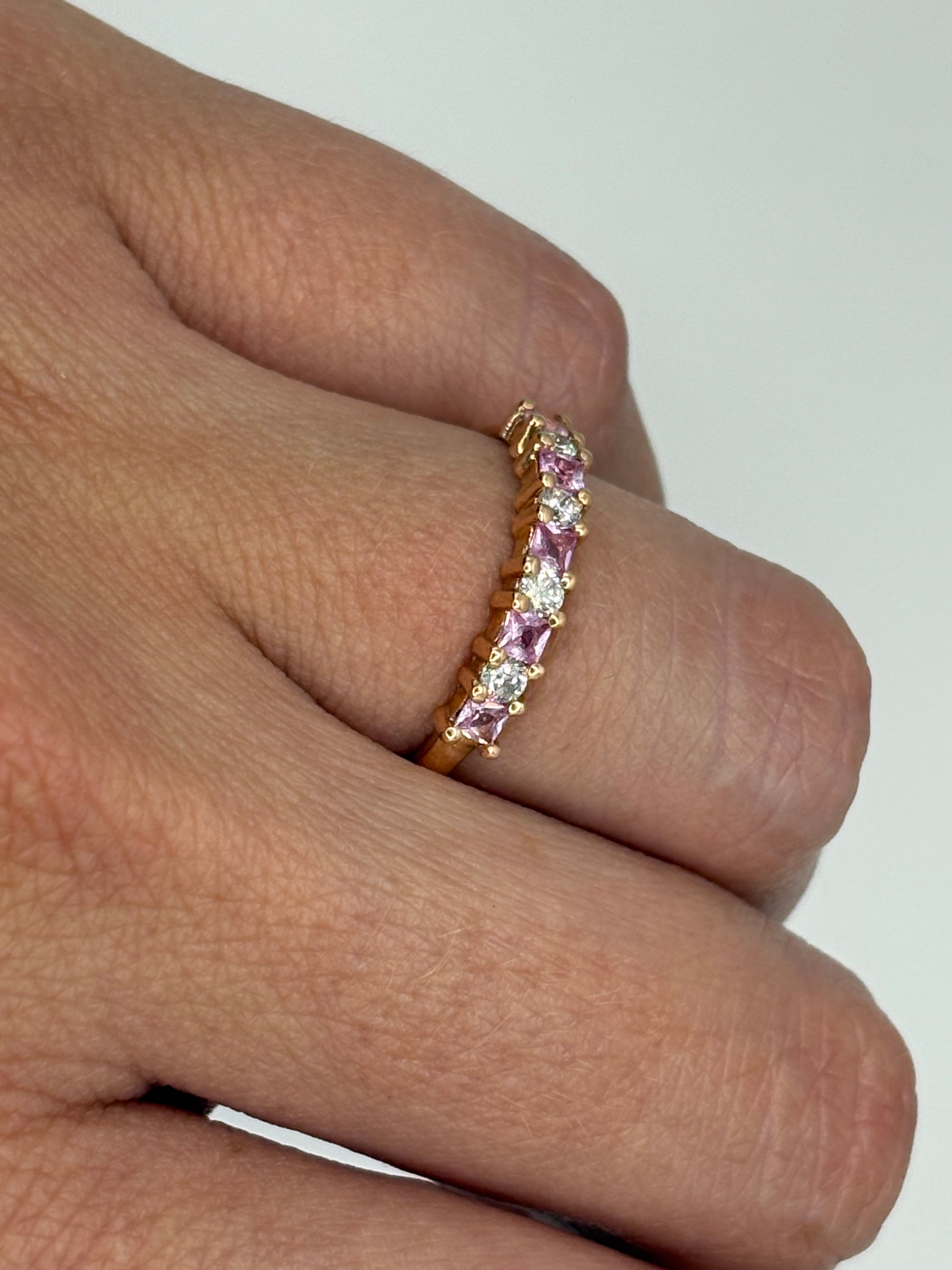5 Zafiros rosa corte princesa combinado con 4 diamantes naturales.