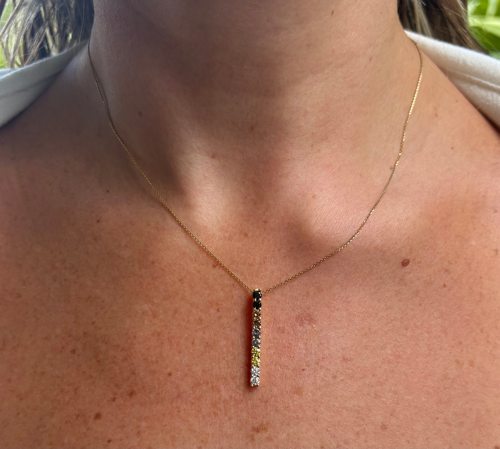 Dije con 5 diferentes tipos de diamantes sumando un total de 1ct en oro de 14k.