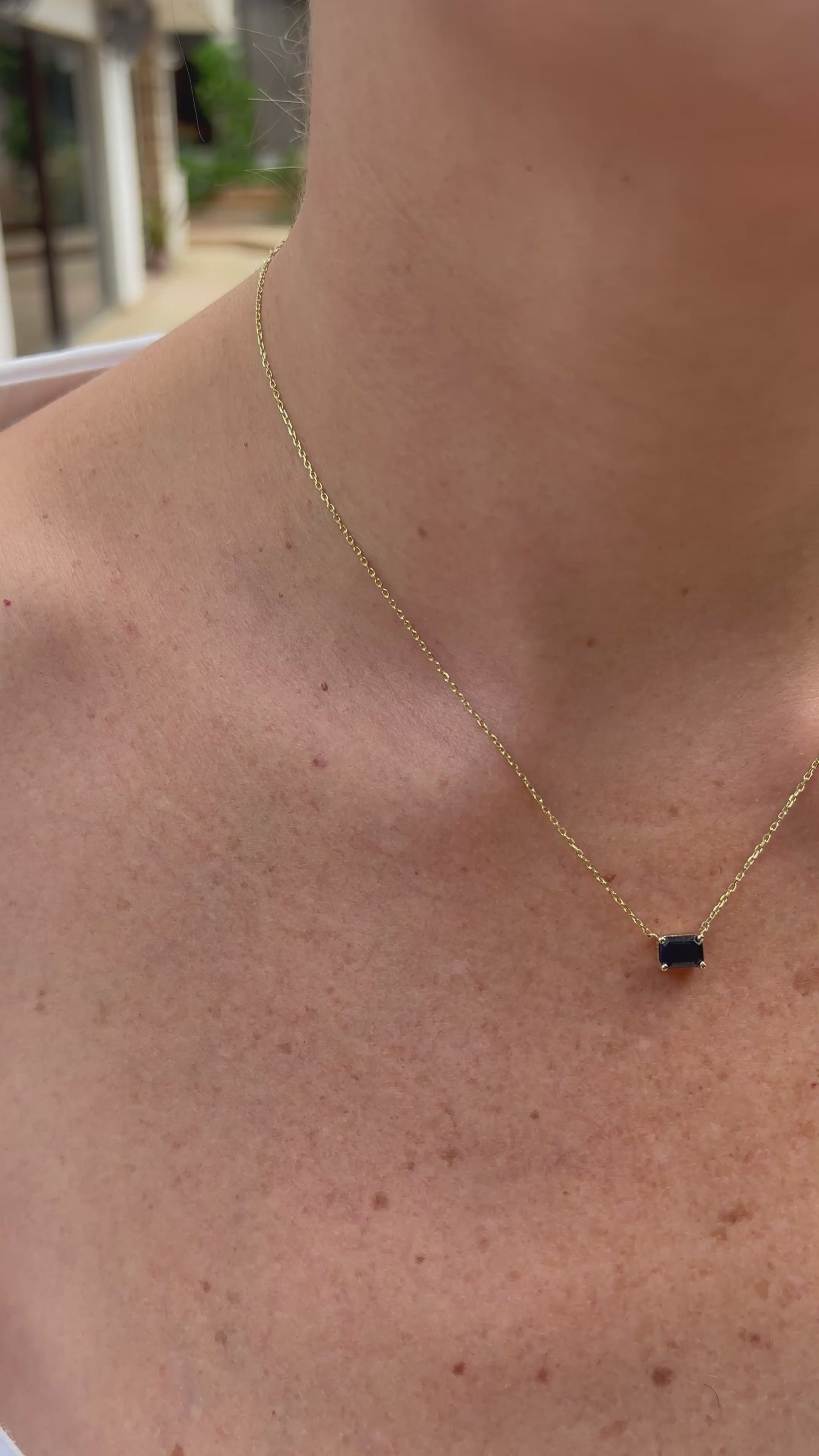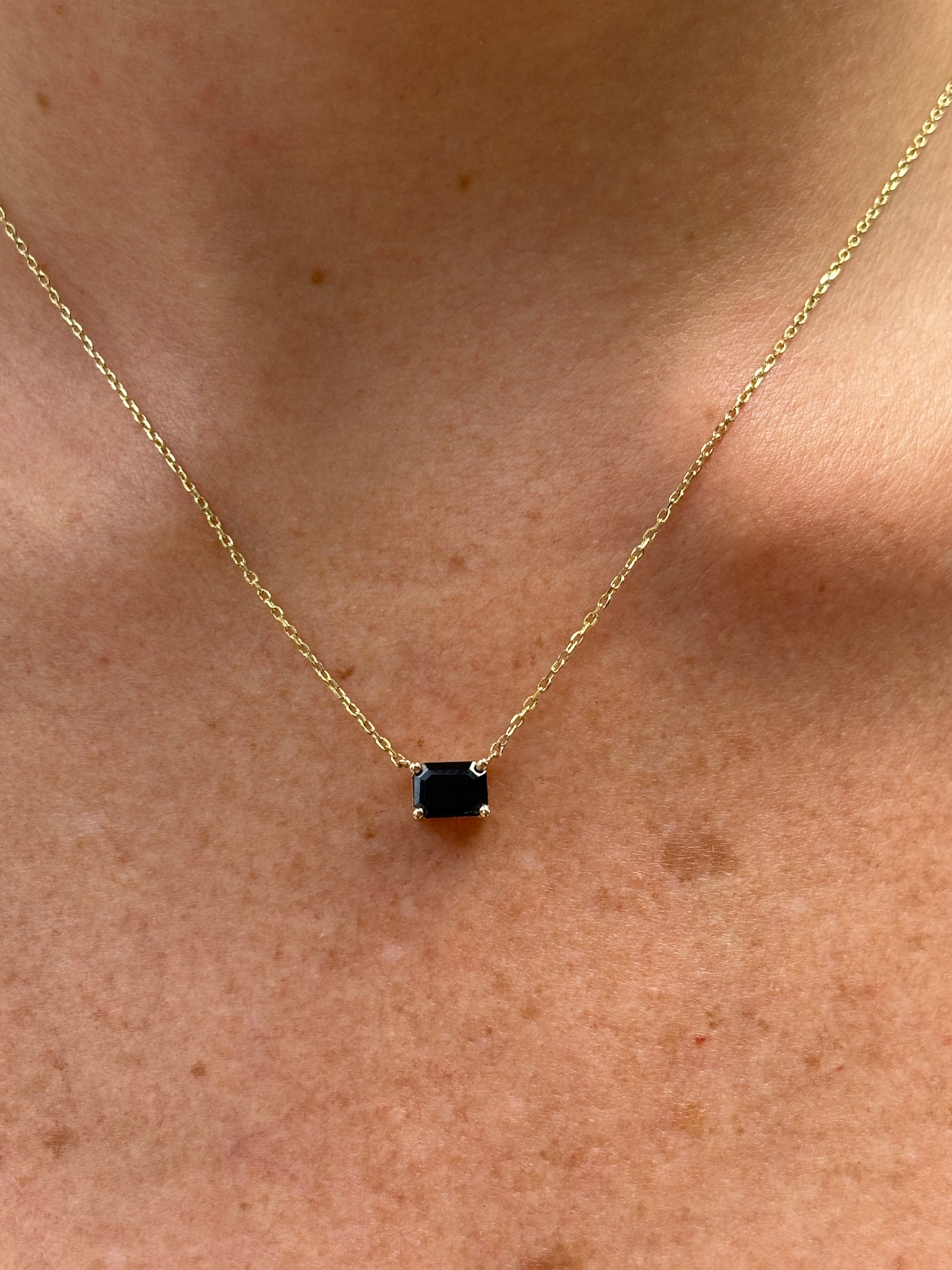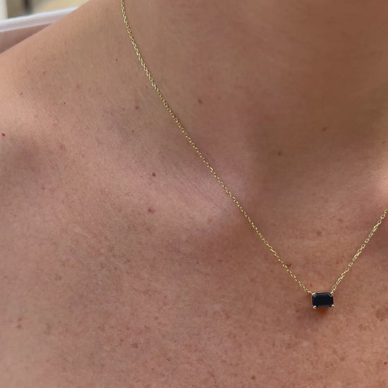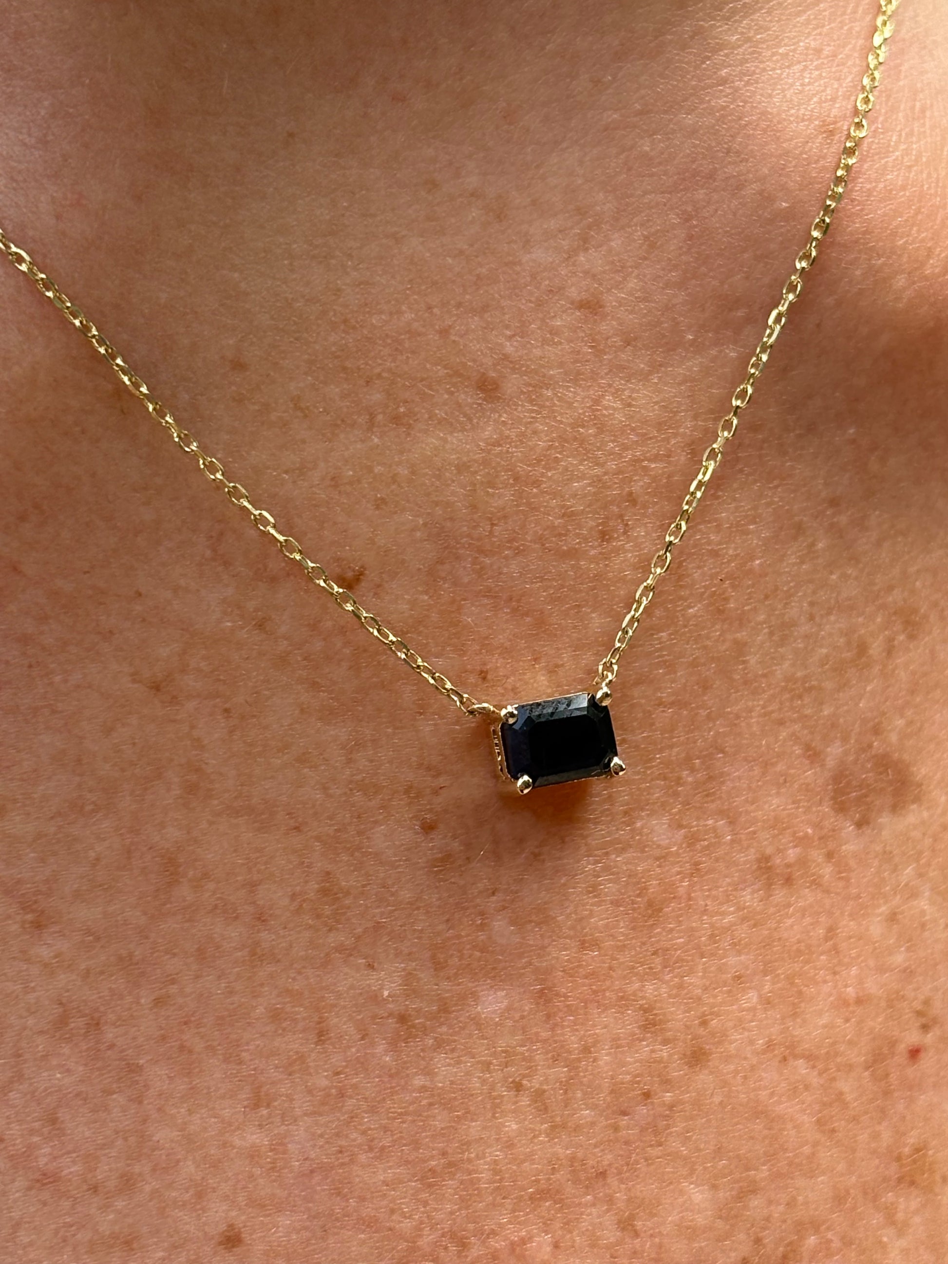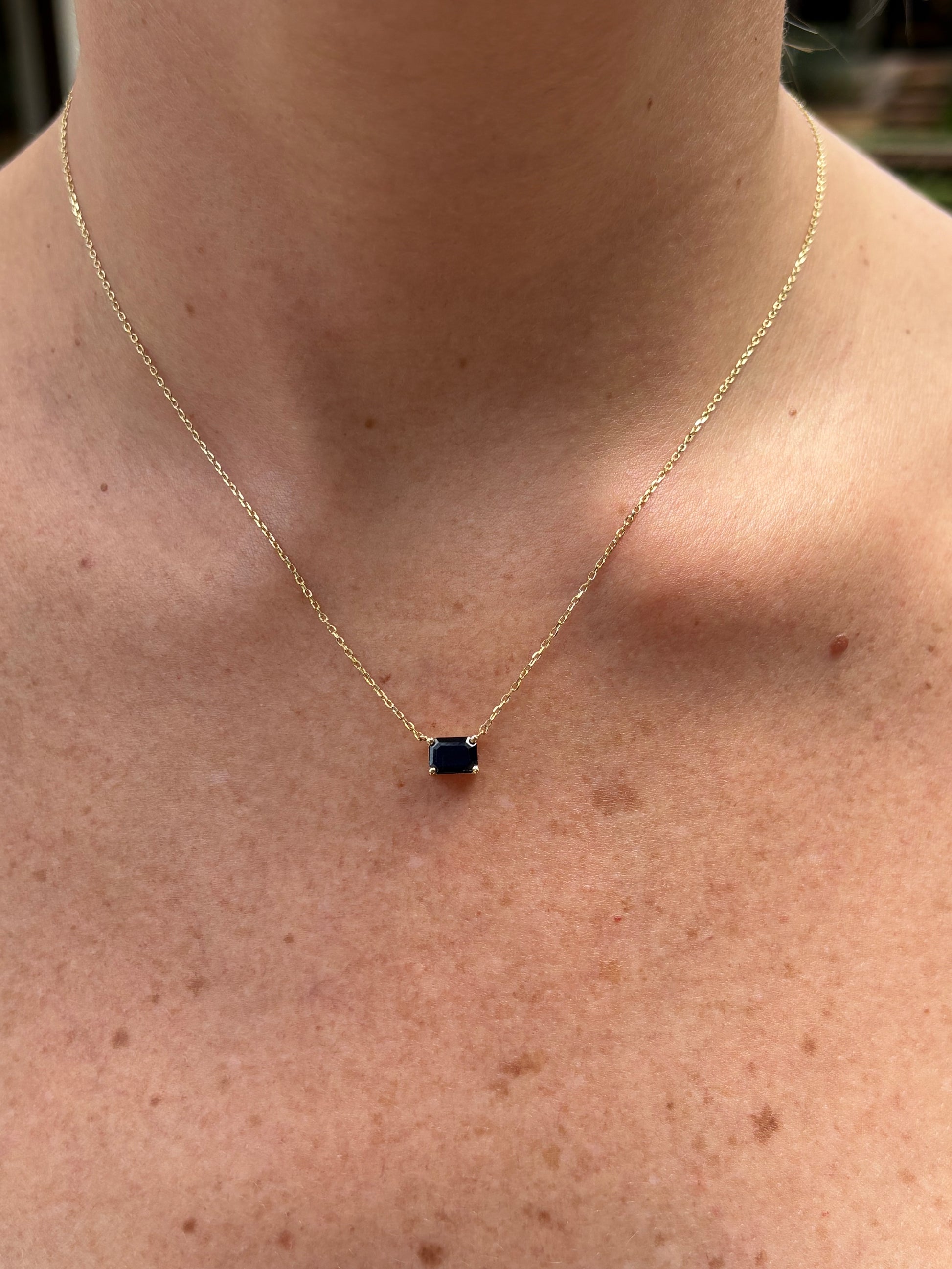 Collar con zafiro corte esmeralda 6x4 mm en oro de 14k.