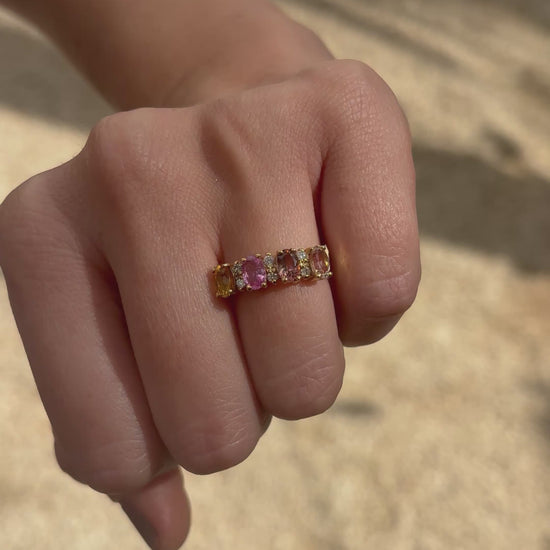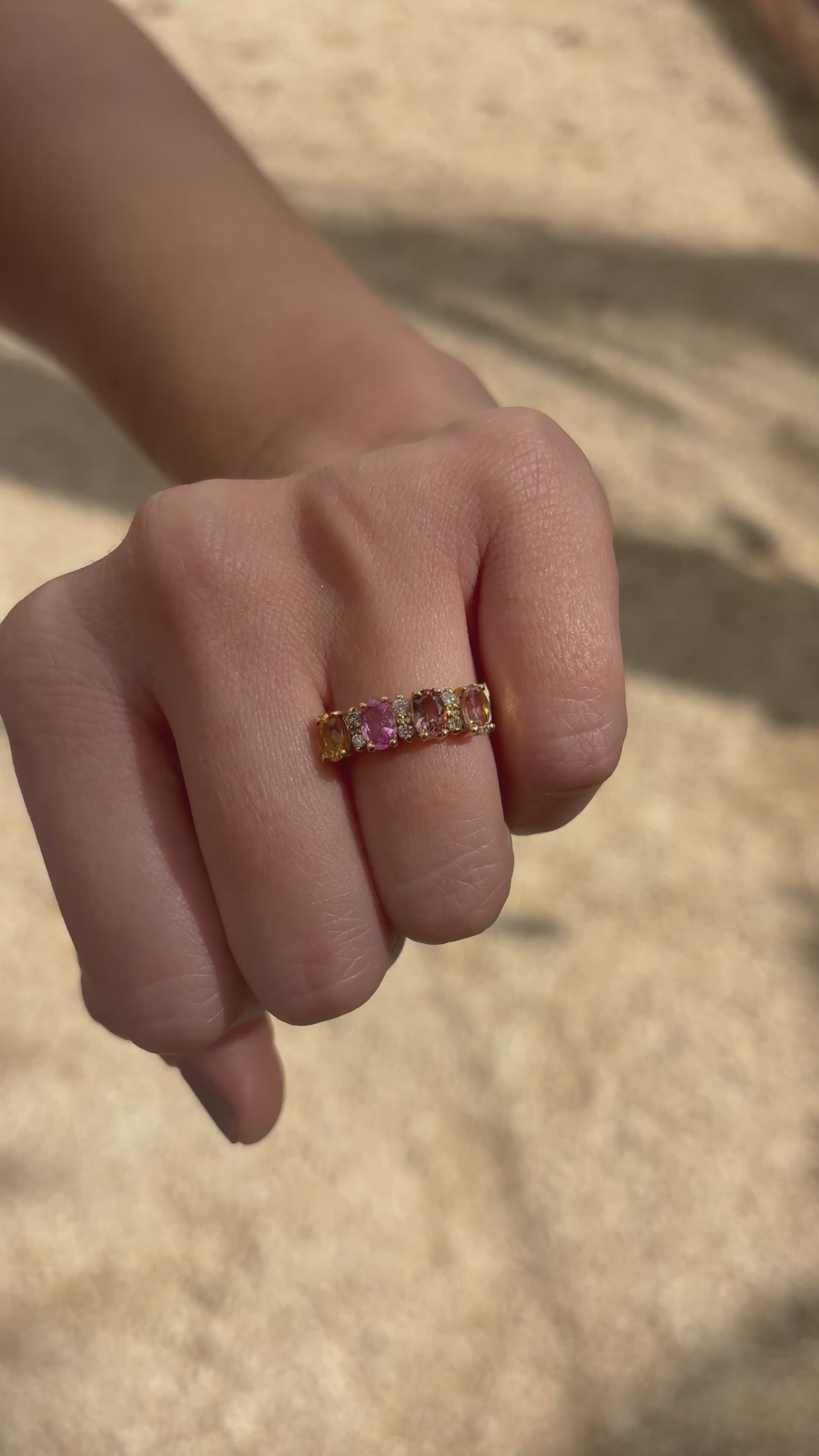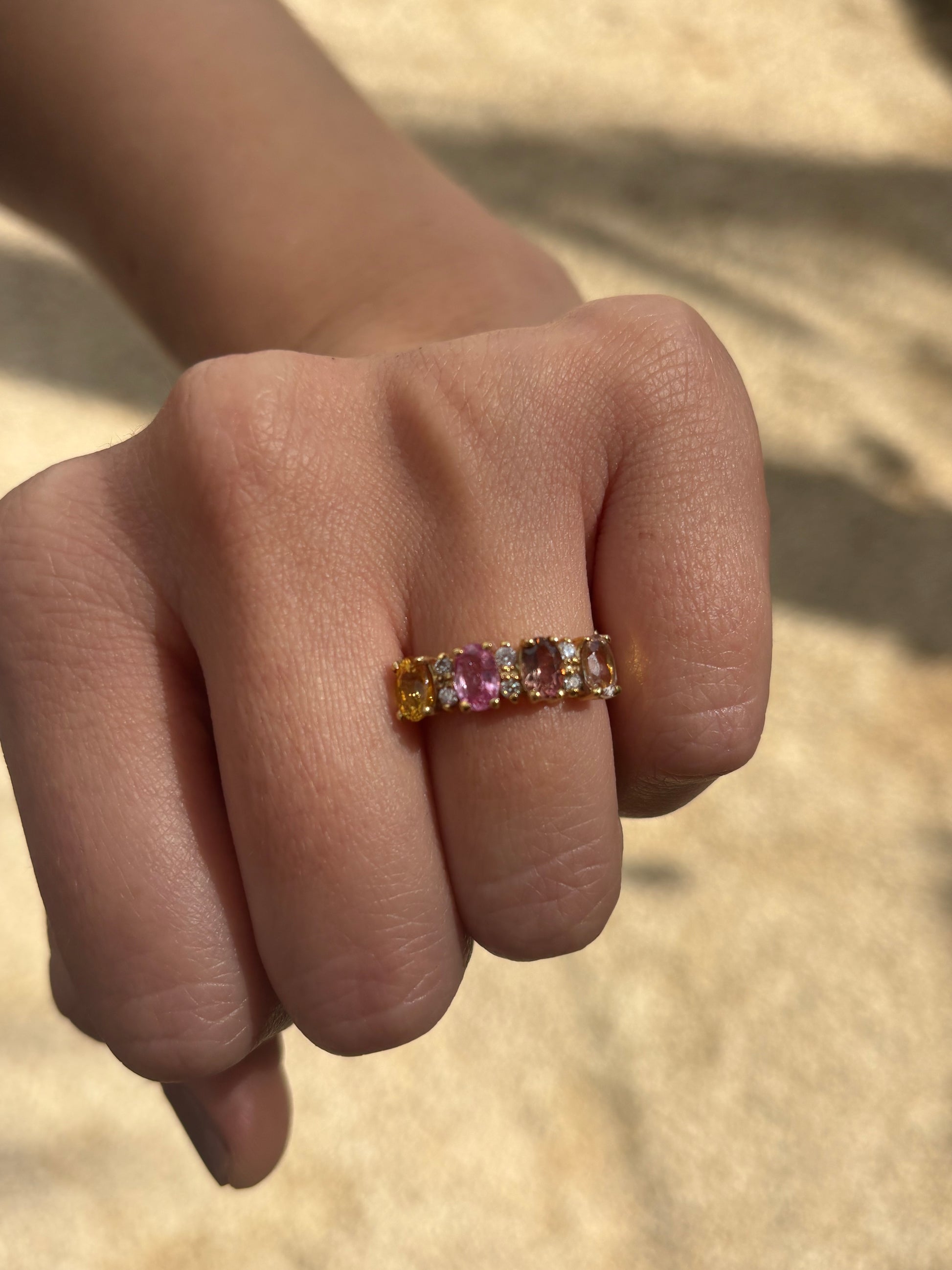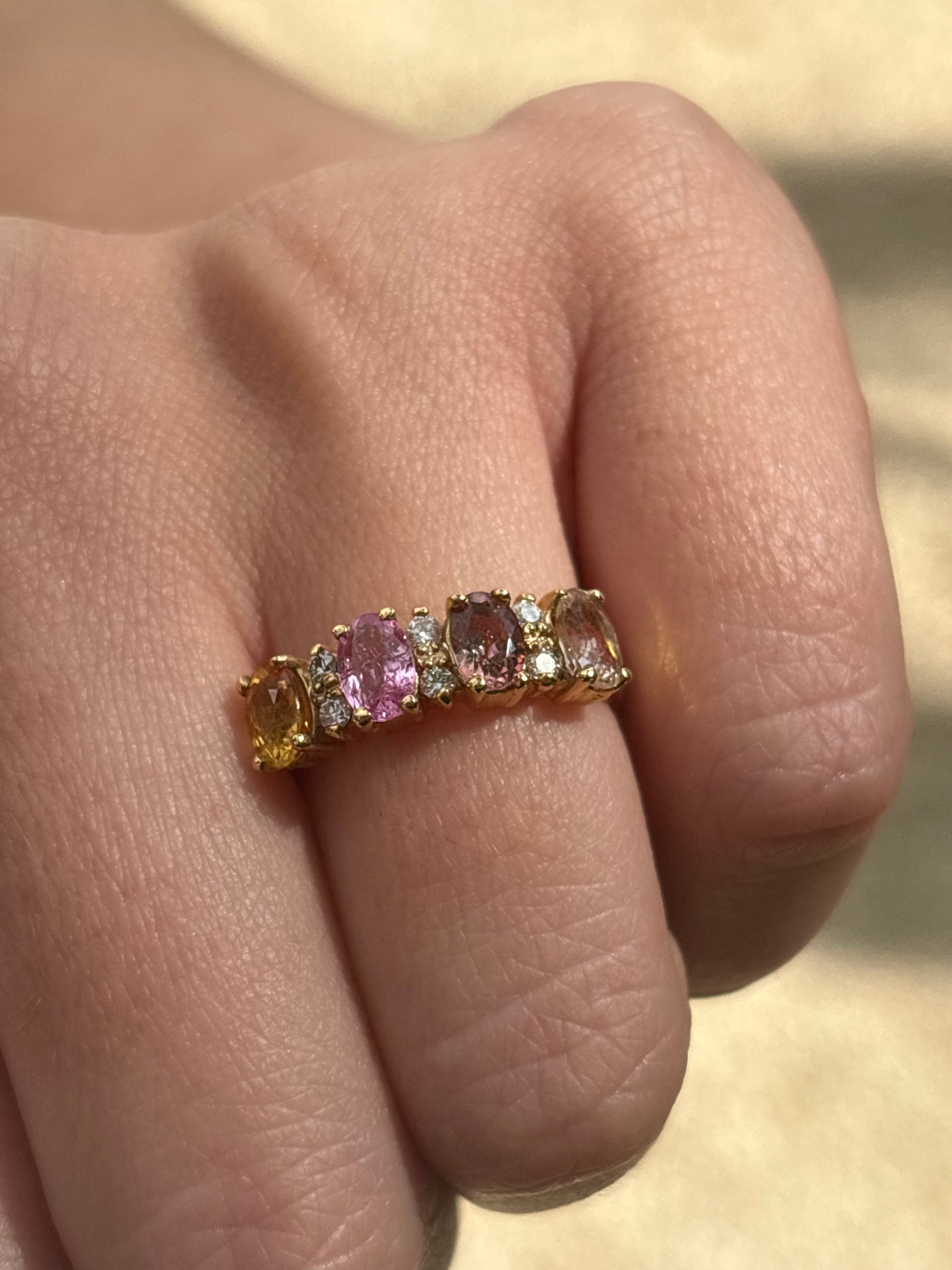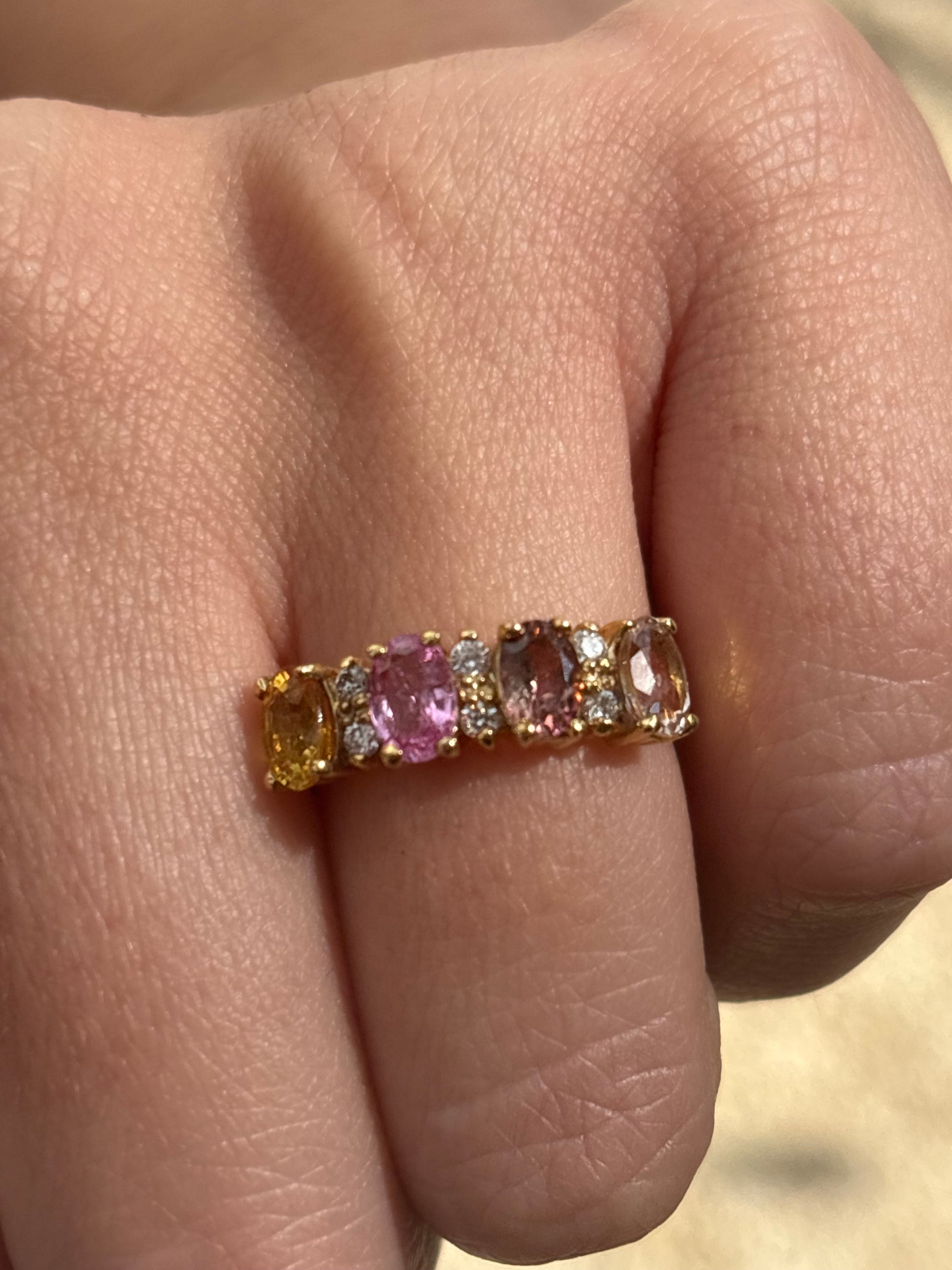 5 turminas en diferente color ovales 6x4 y .18 cts de diamantes.