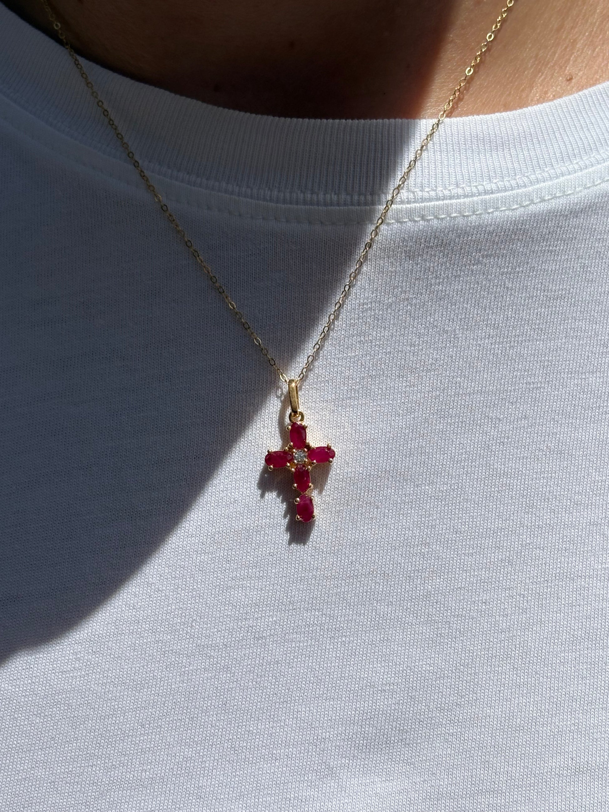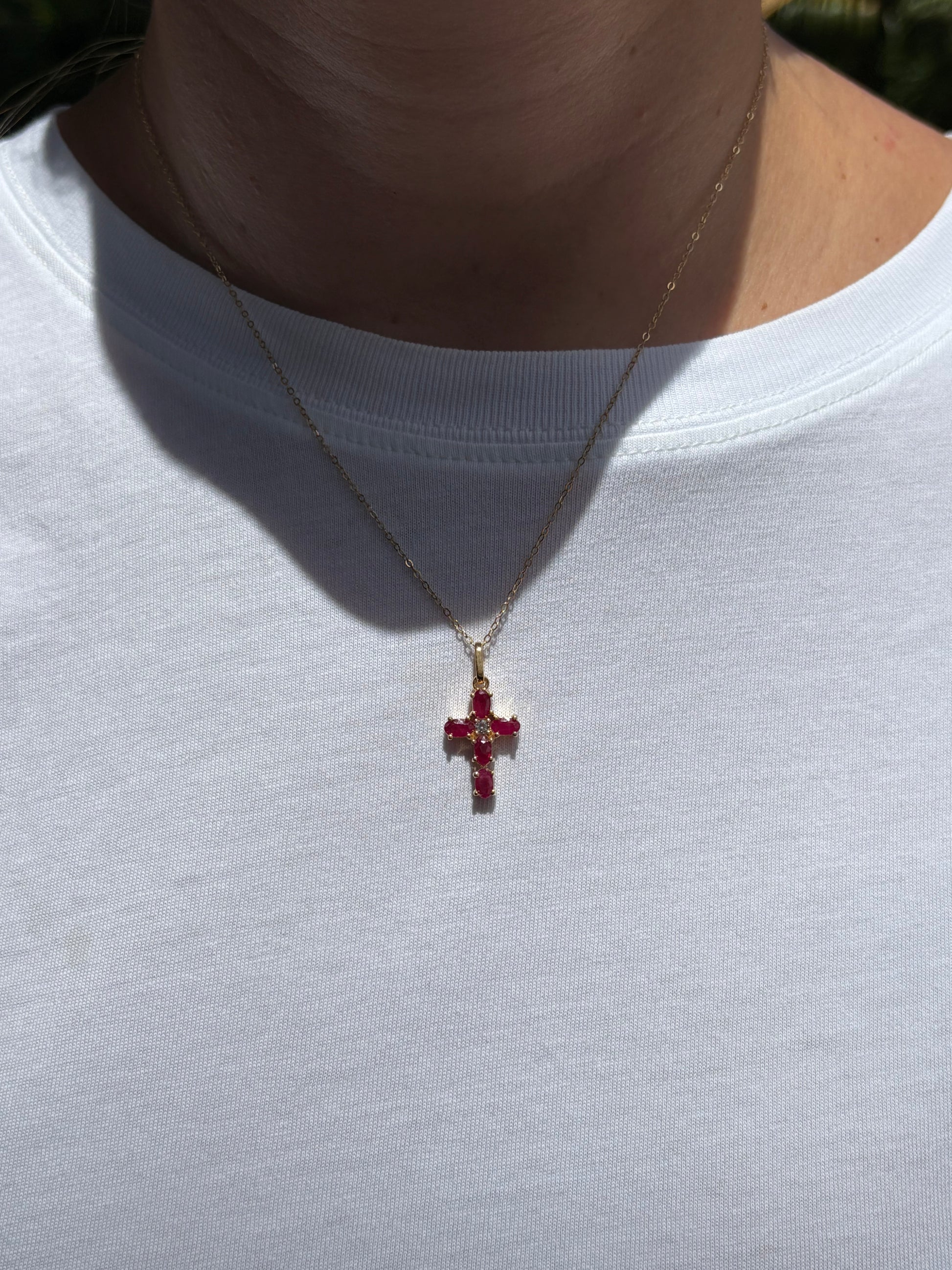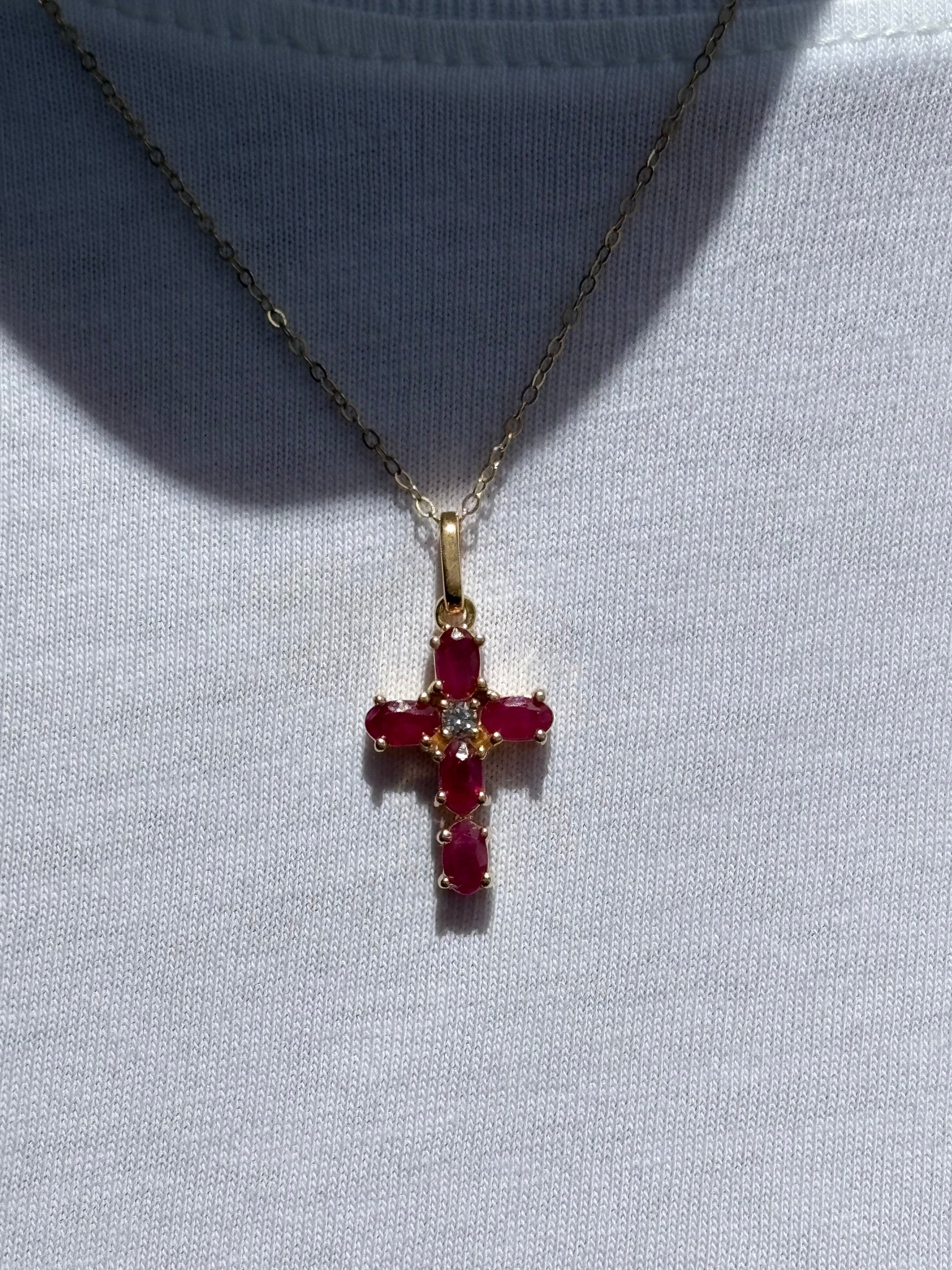 5 ovales de Rubí 5x3mm con diamante de .03 cts en oro de 14k.