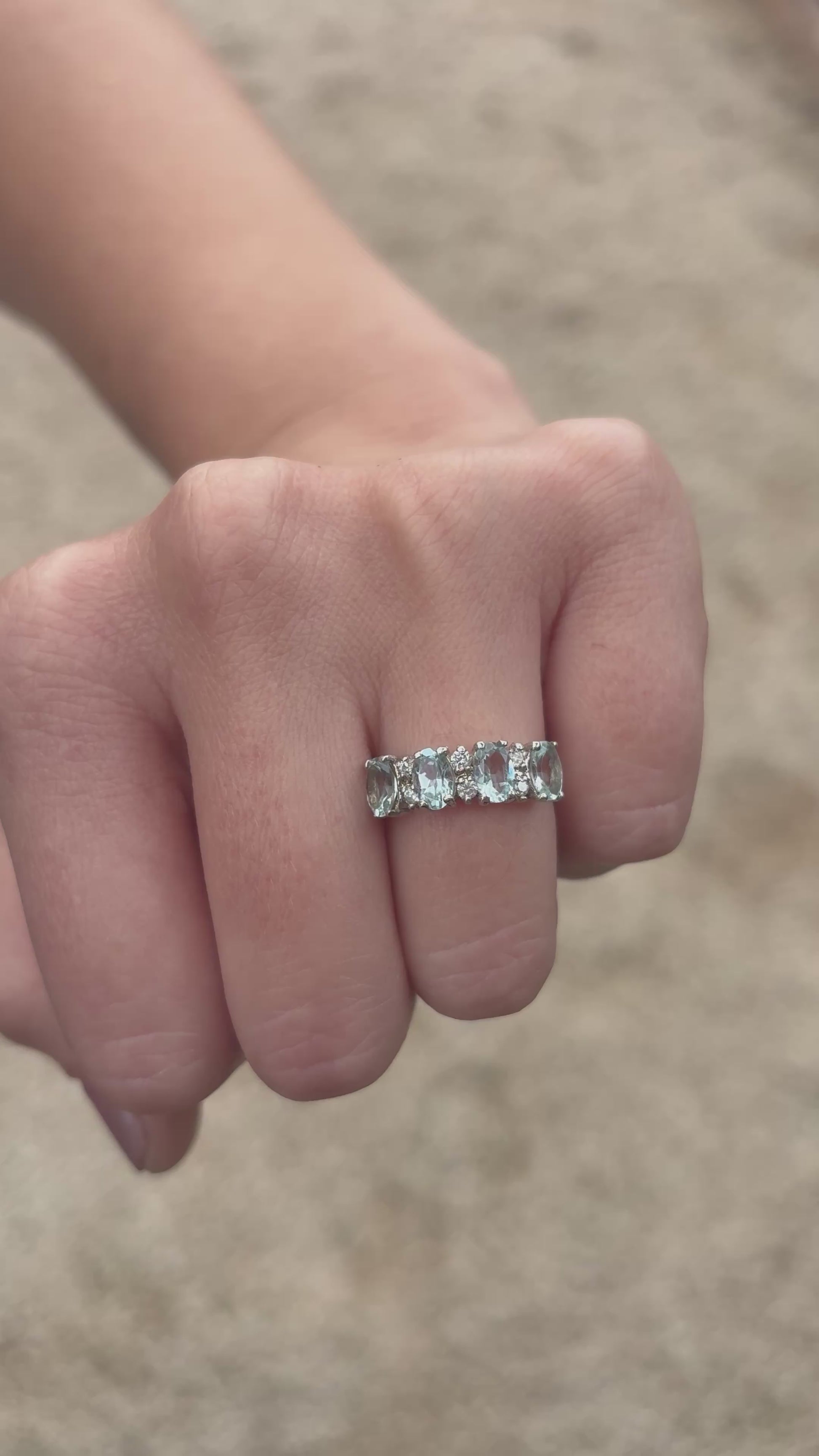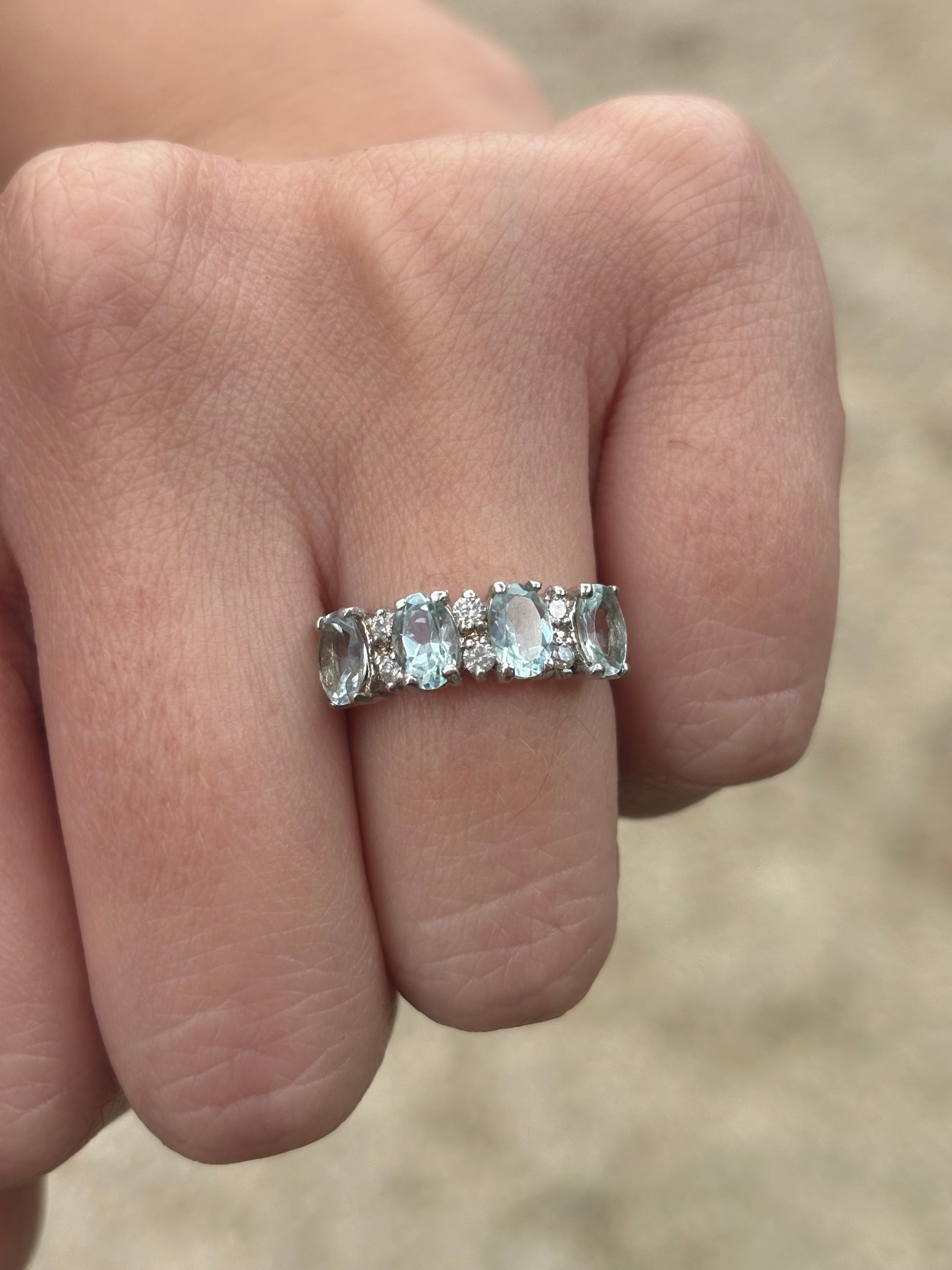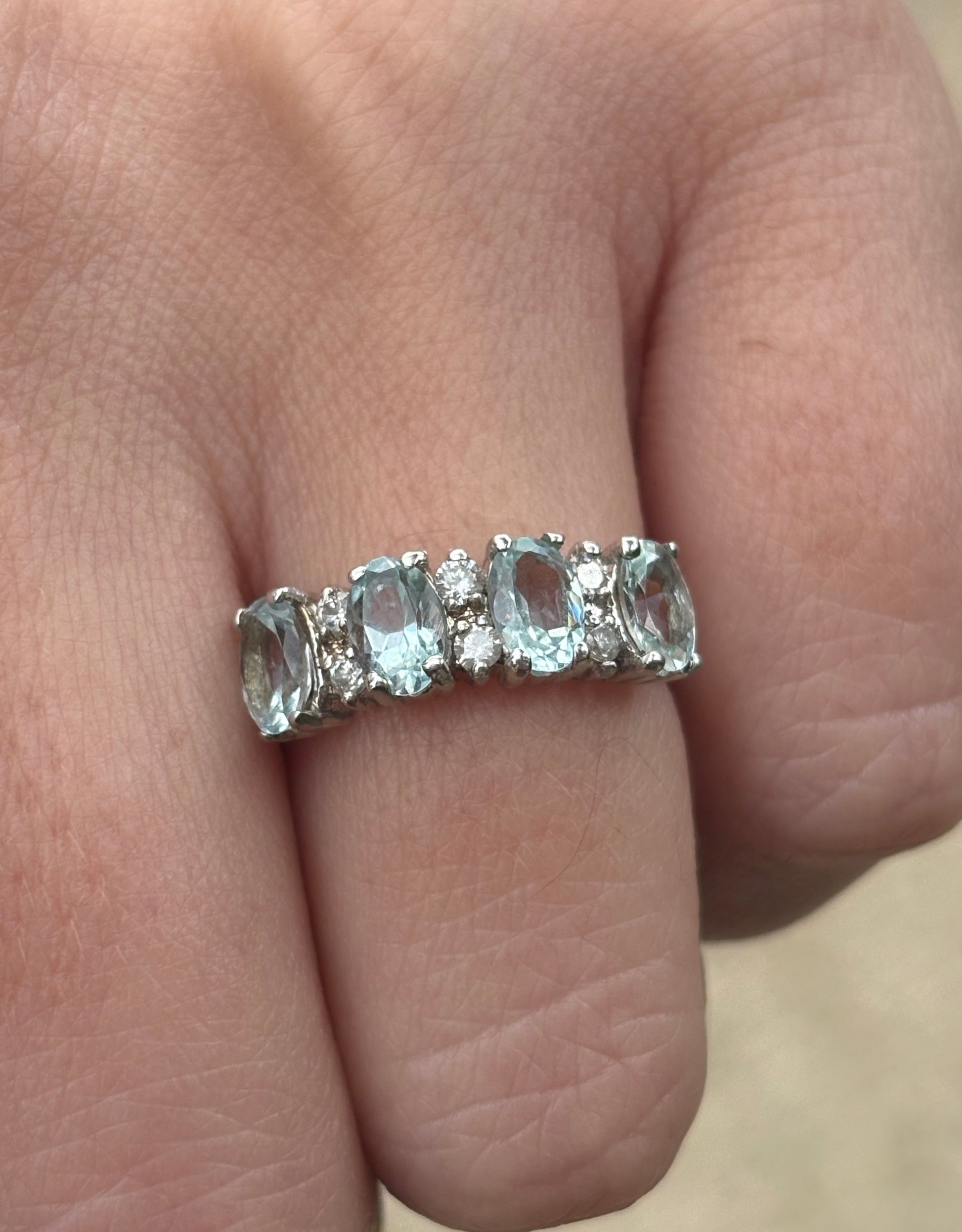 4 aguamarinas ovales 6x4 y .18 cts de diamantes