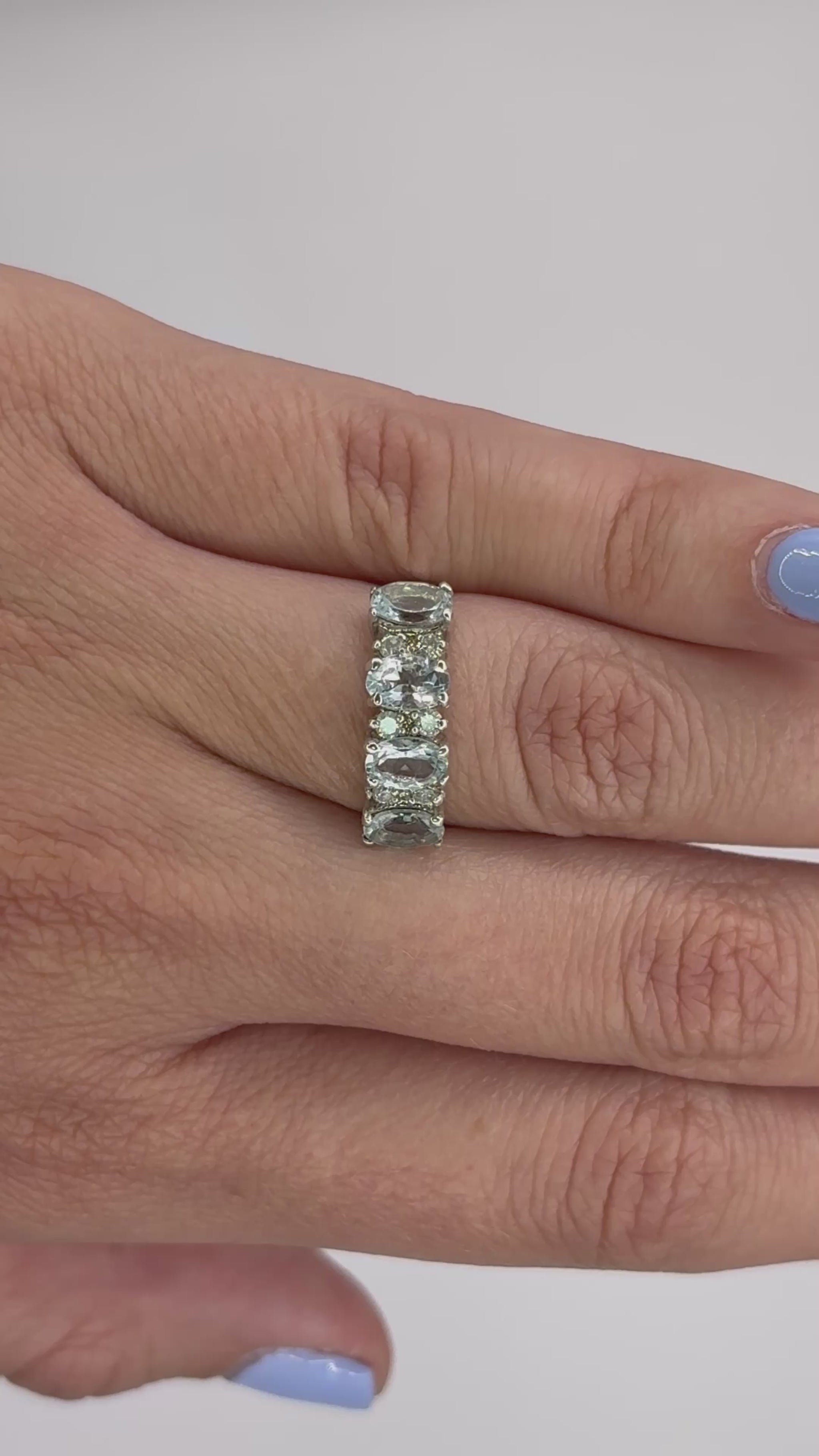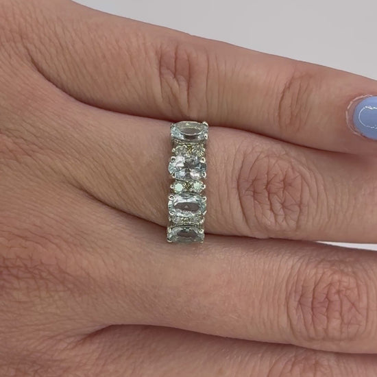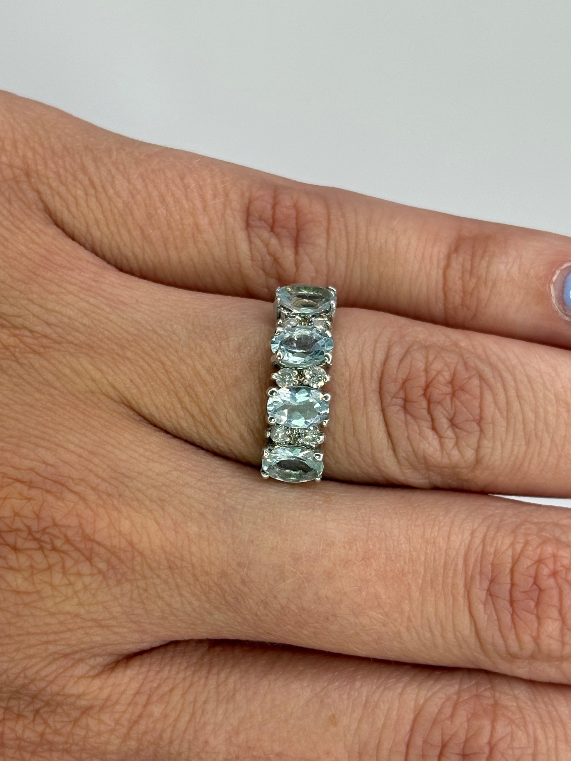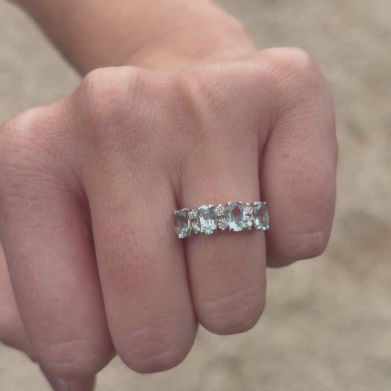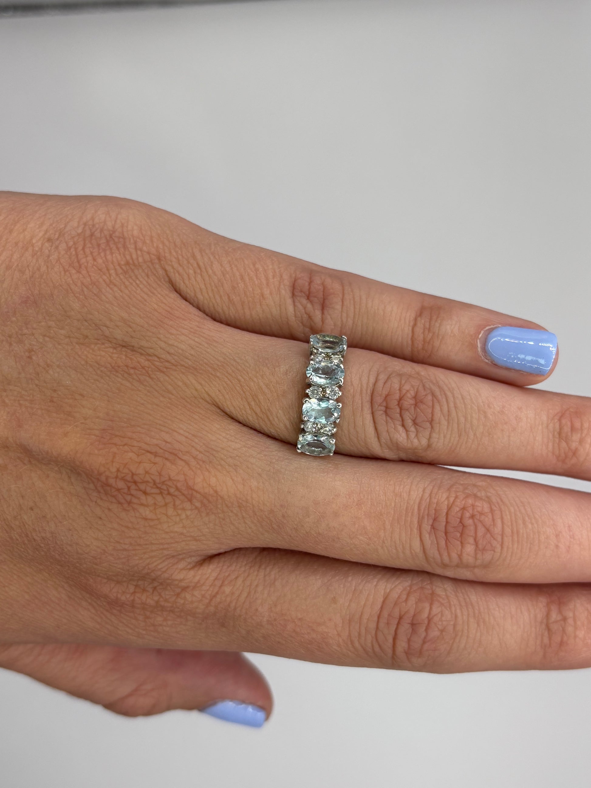4 aguamarinas ovales 6x4 y .18 cts de diamantes