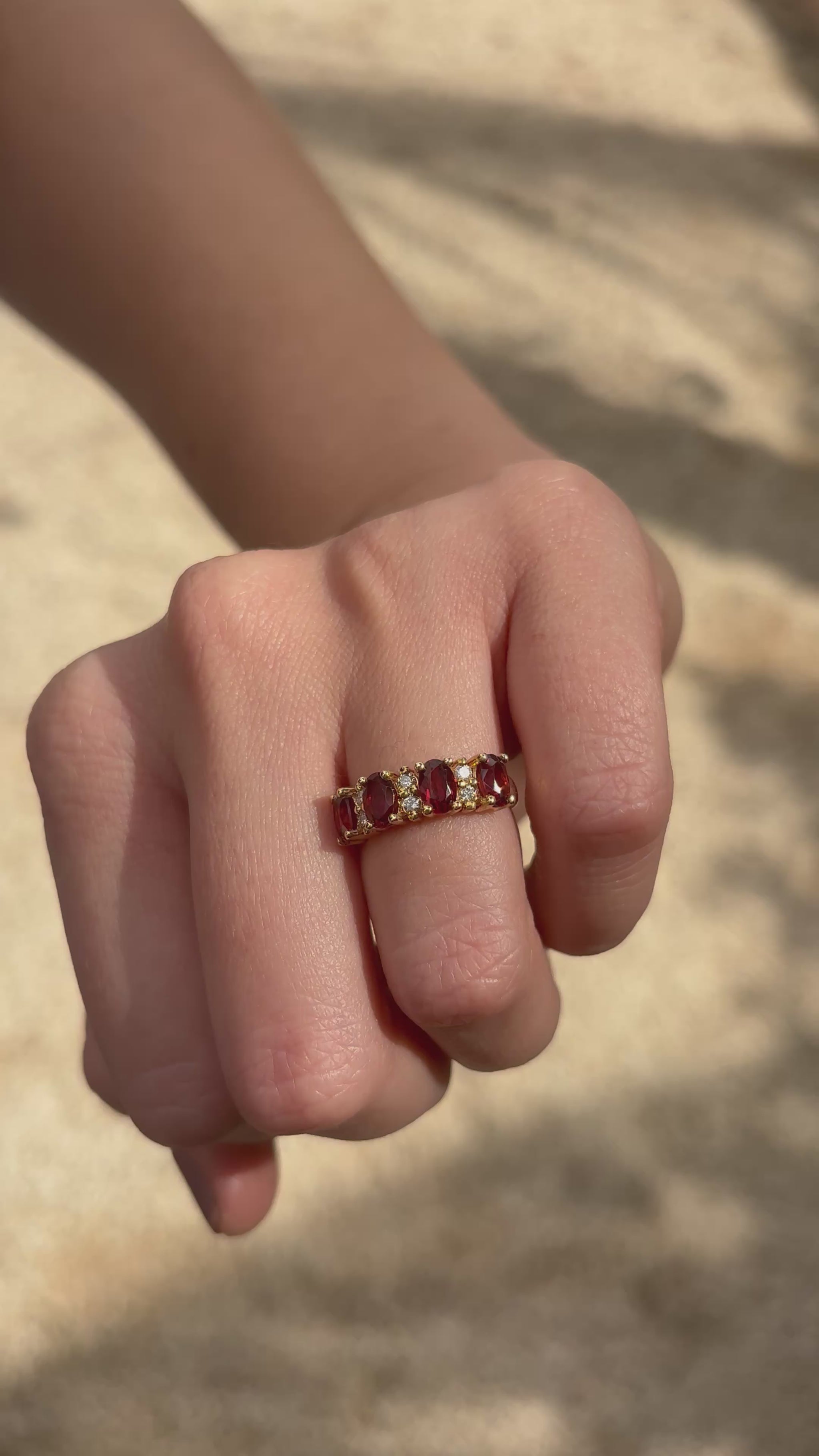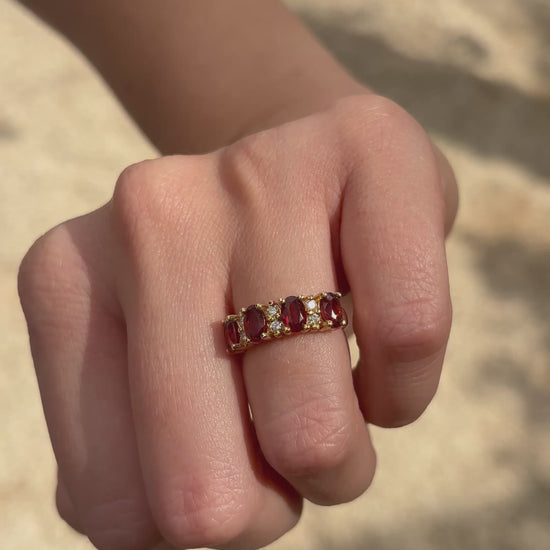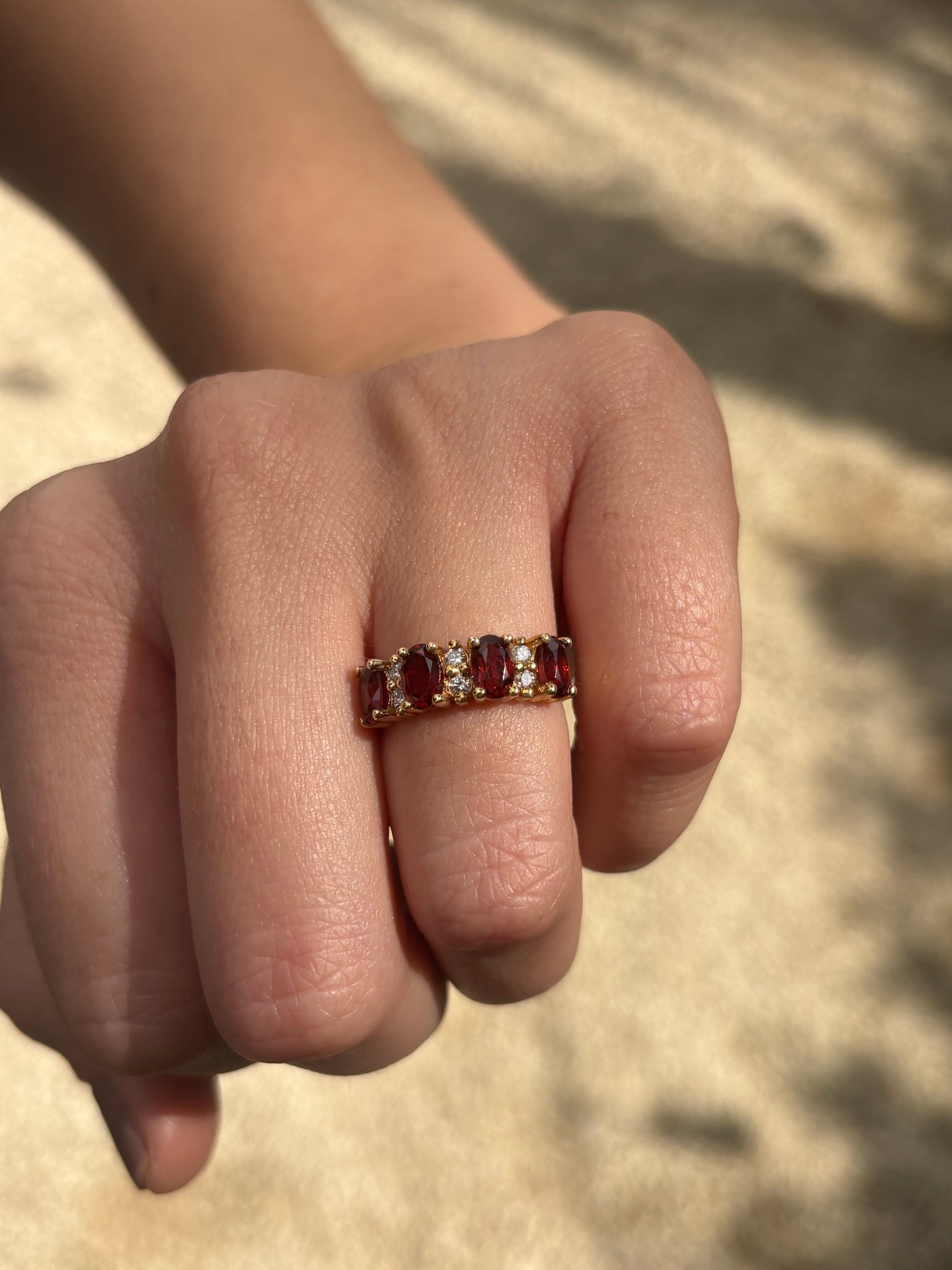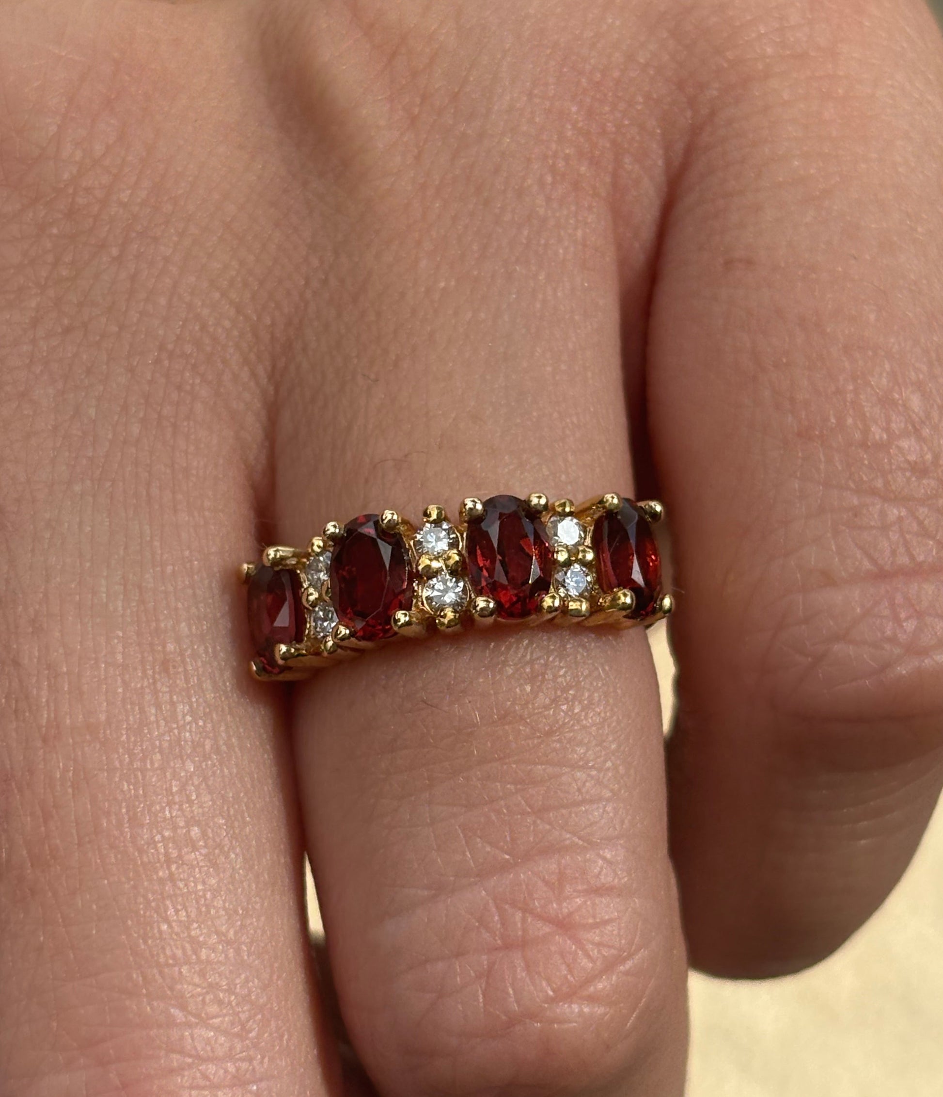 4 granátes ovales 6x4 y .18 cts de diamantes