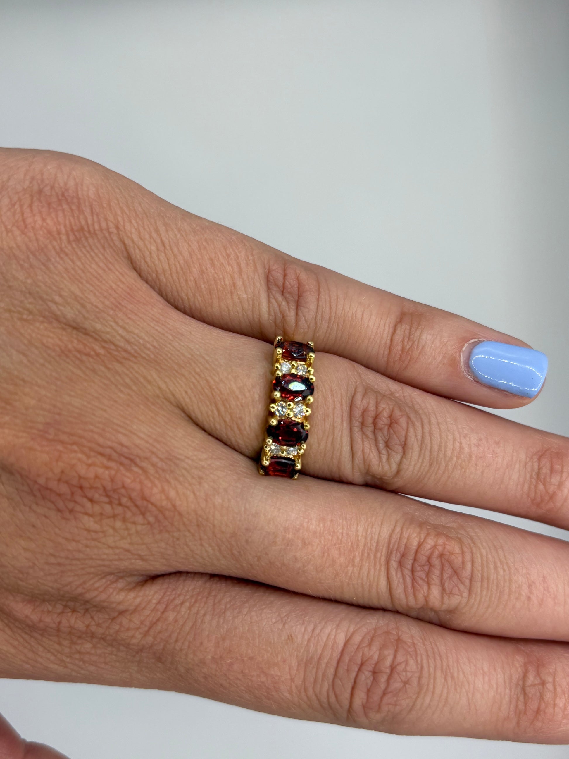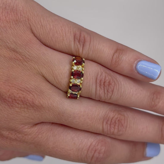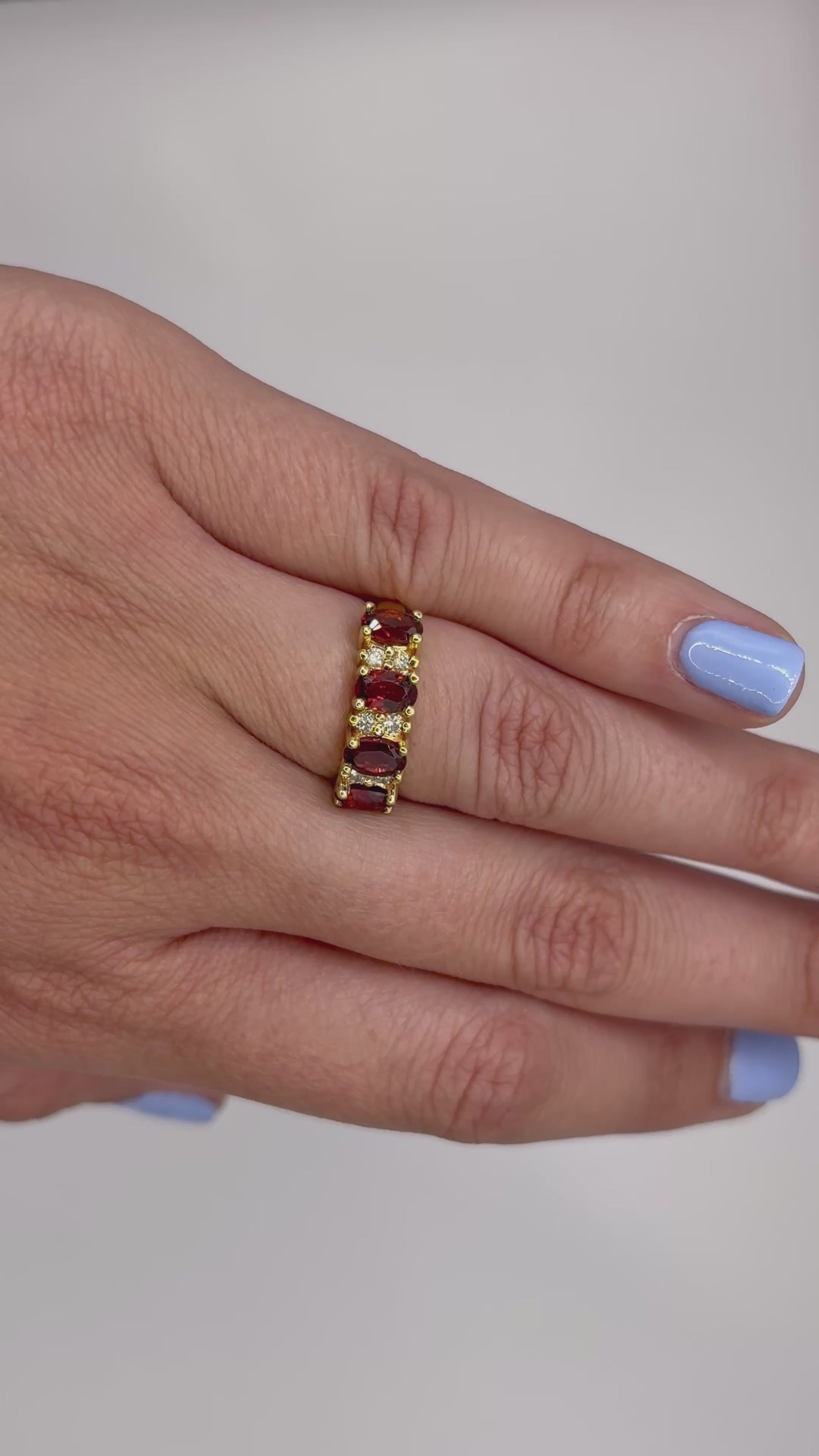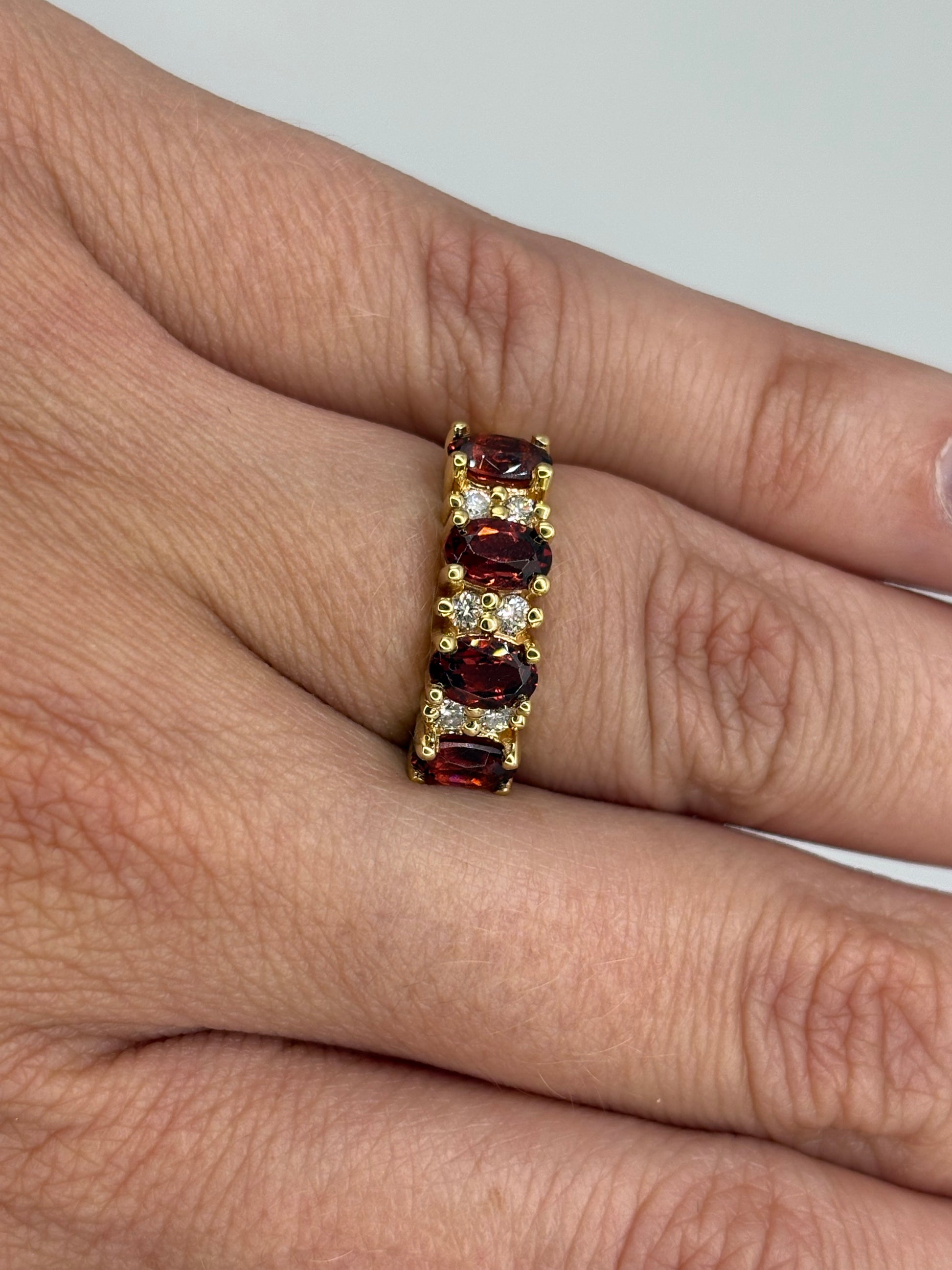 4 granates ovales 6x4 y .18 cts de diamantes