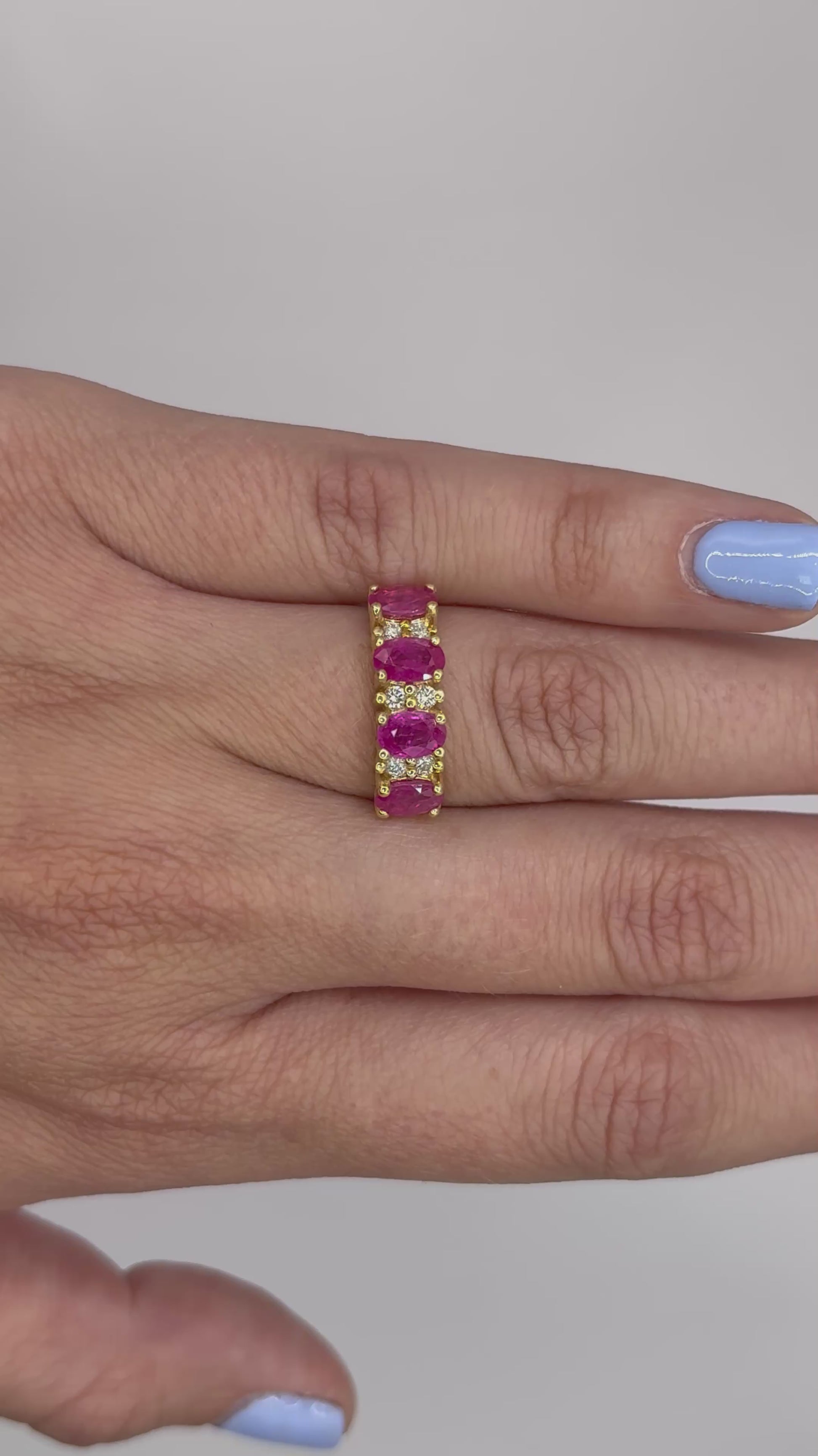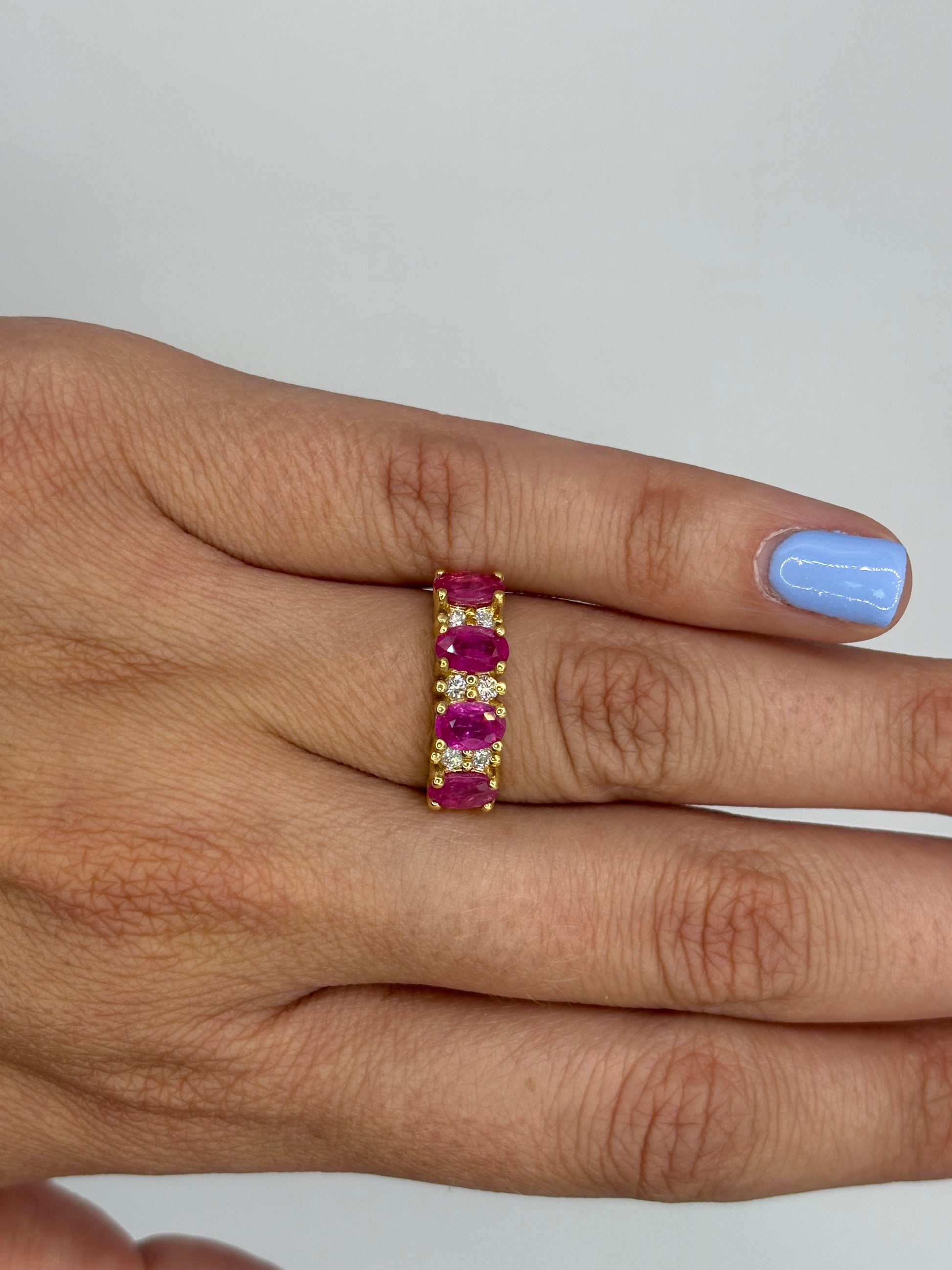 4 rubis ovales 6x4 y .18 cts de diamantes