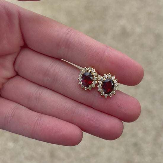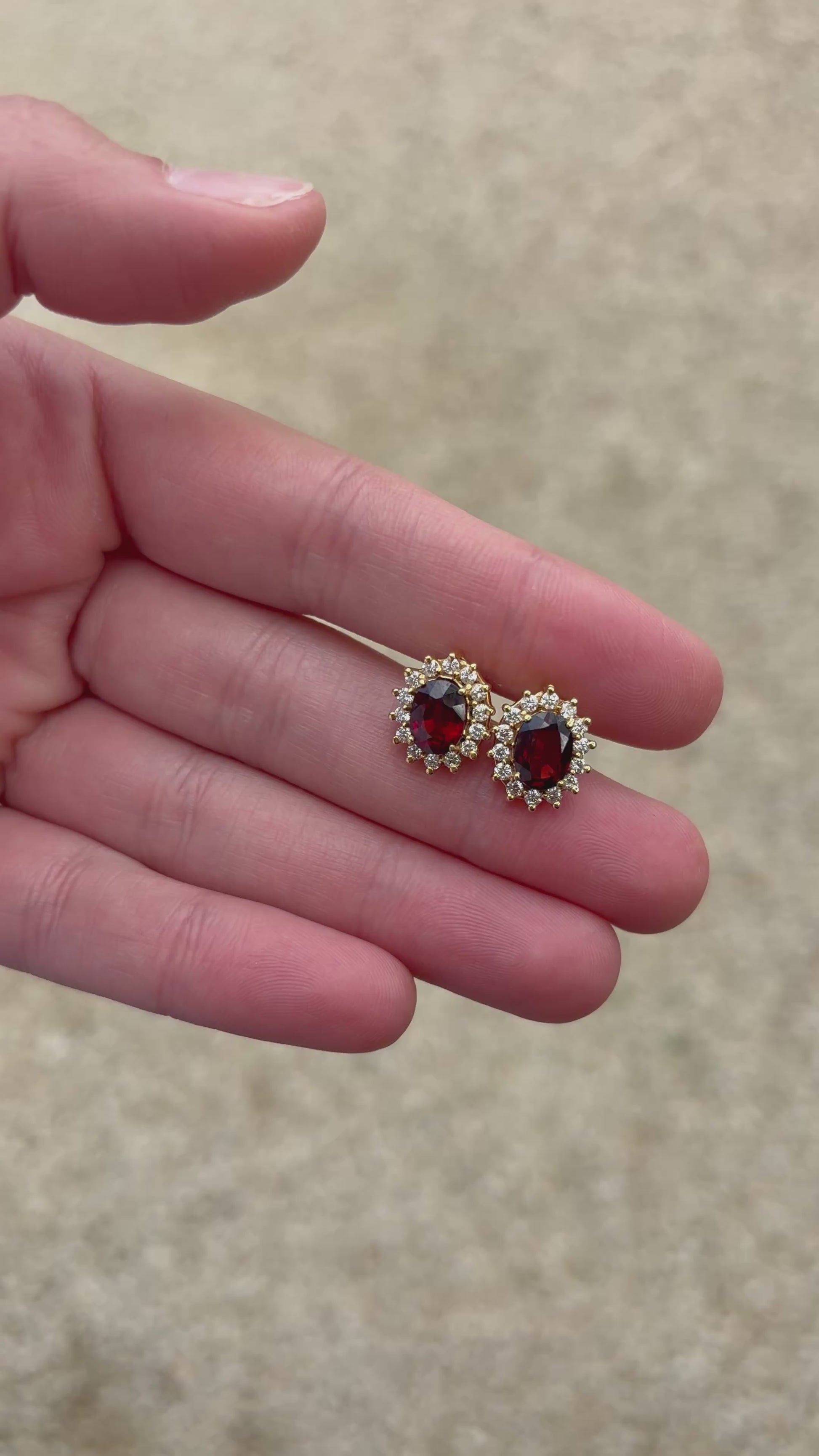 Granate 8x6 mm con halo de .28 cts cada uno.