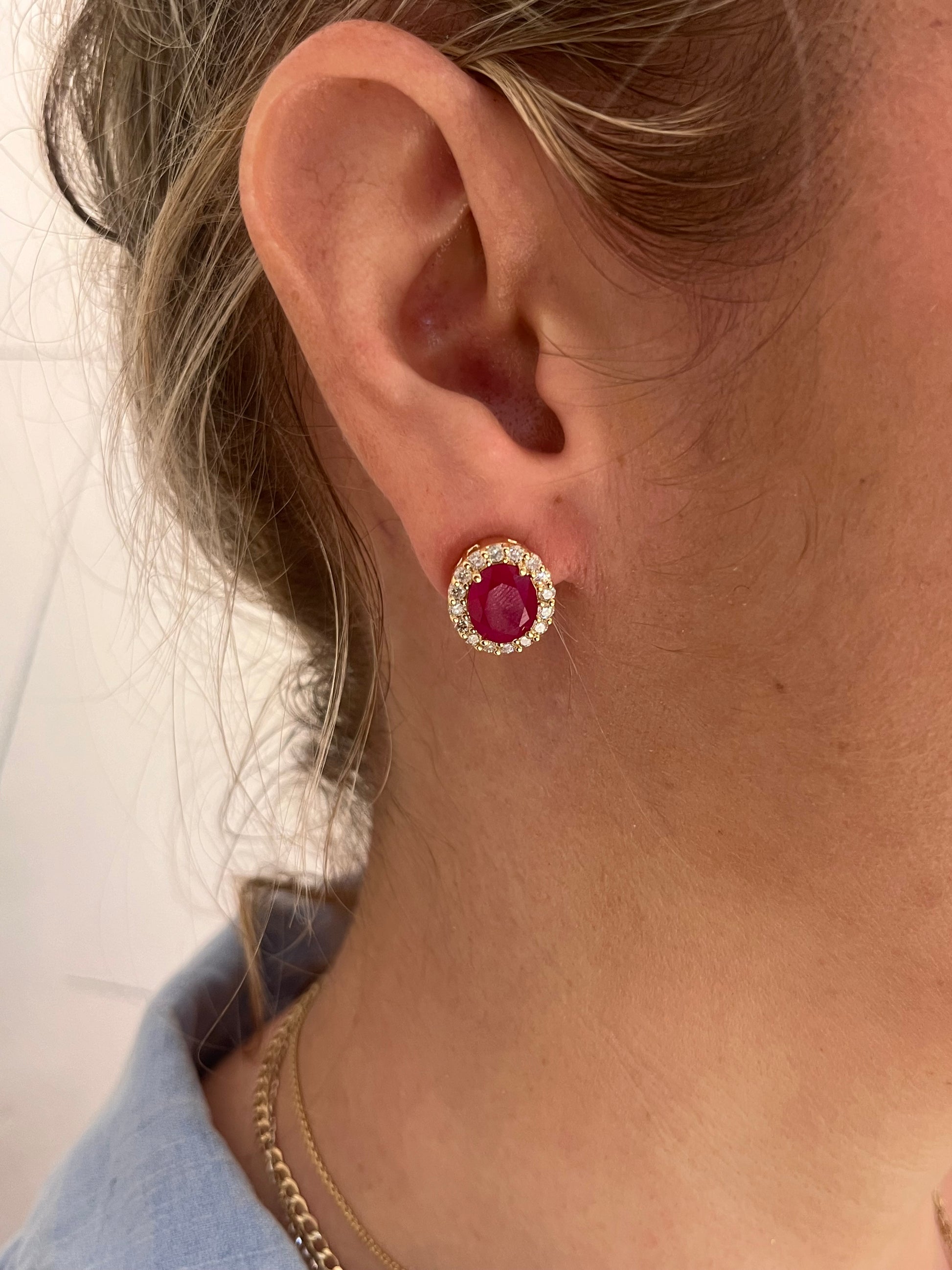 Rubí 9x8 mm con halo de .48 cts cada uno.