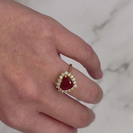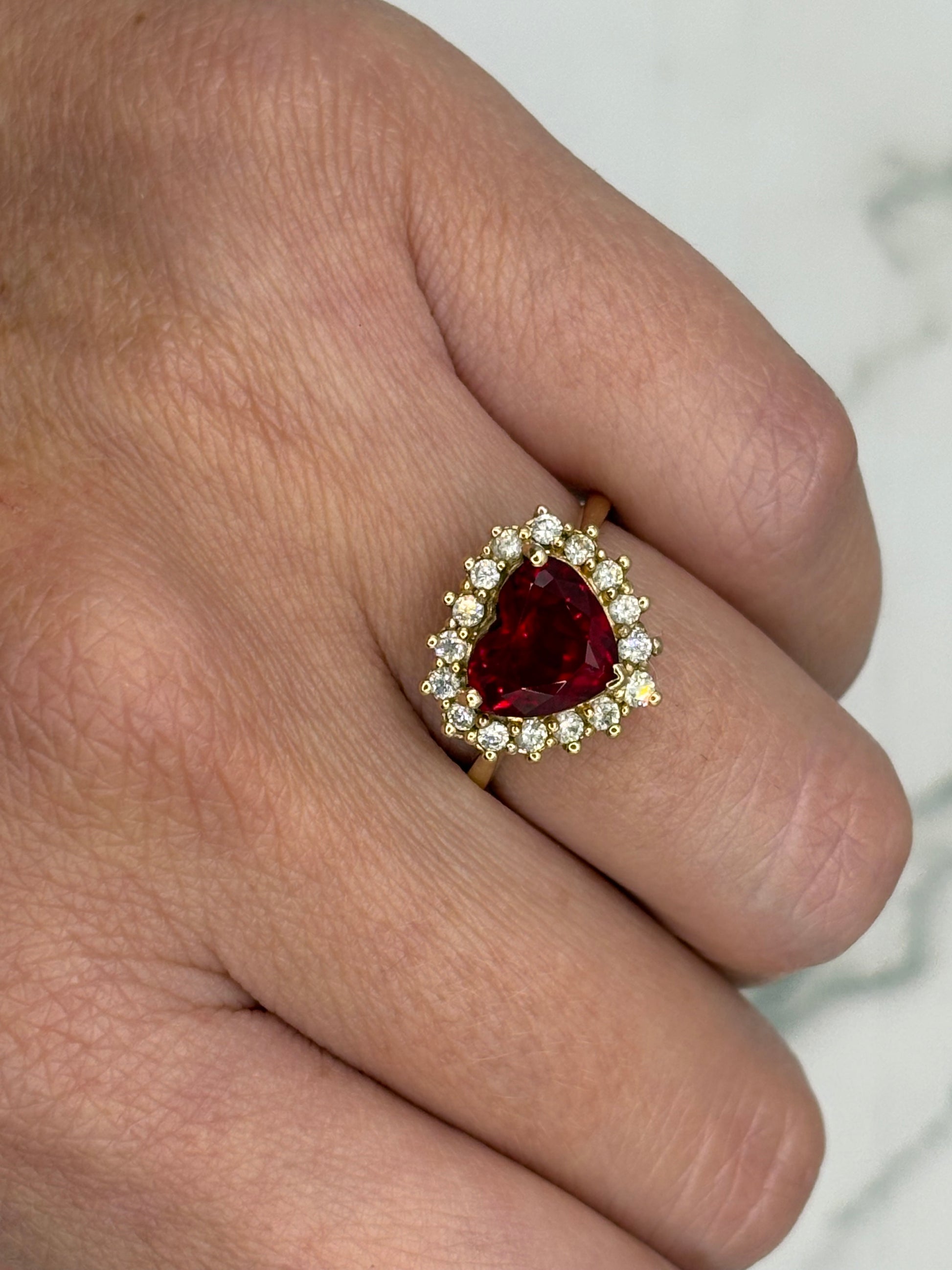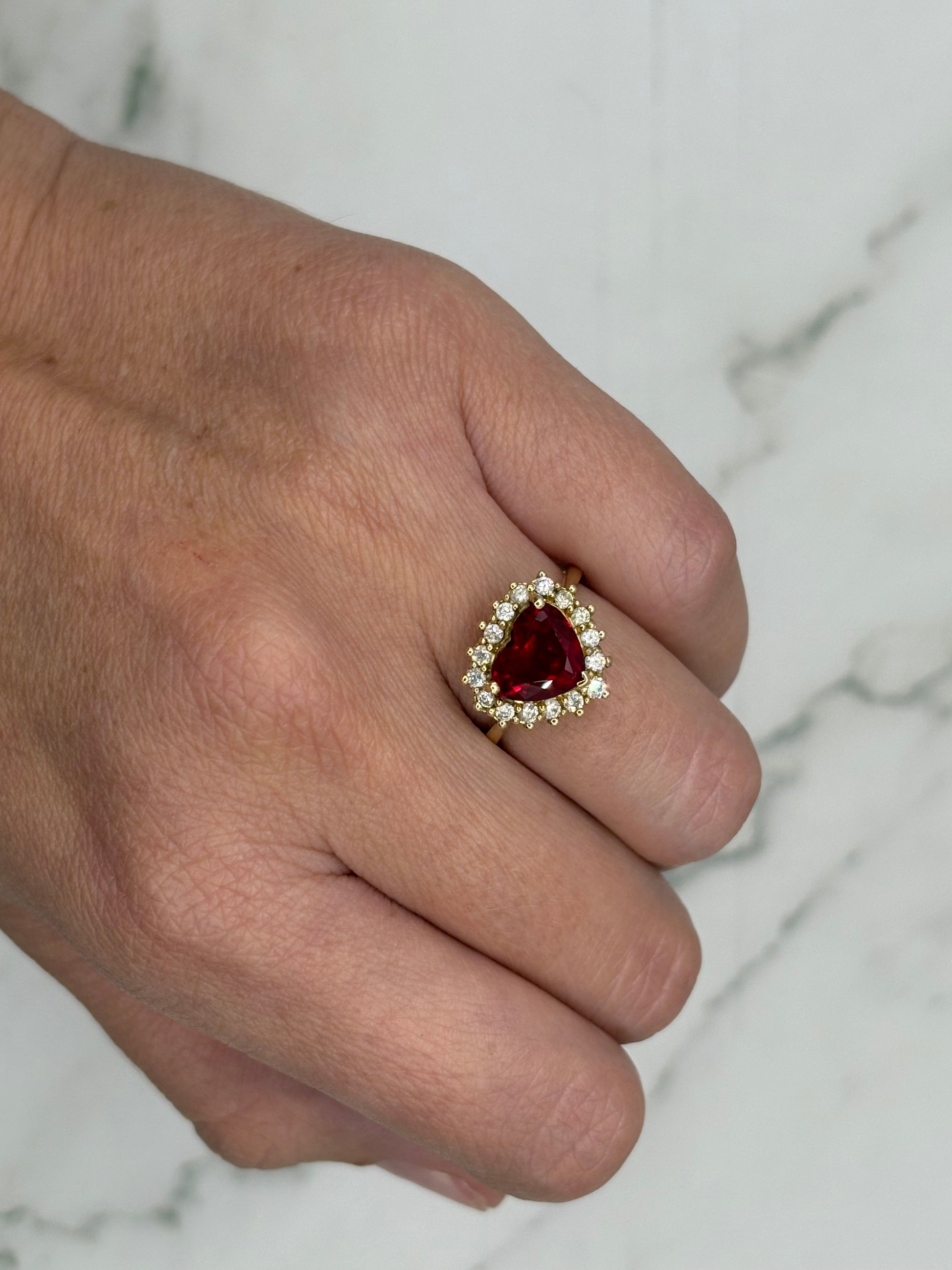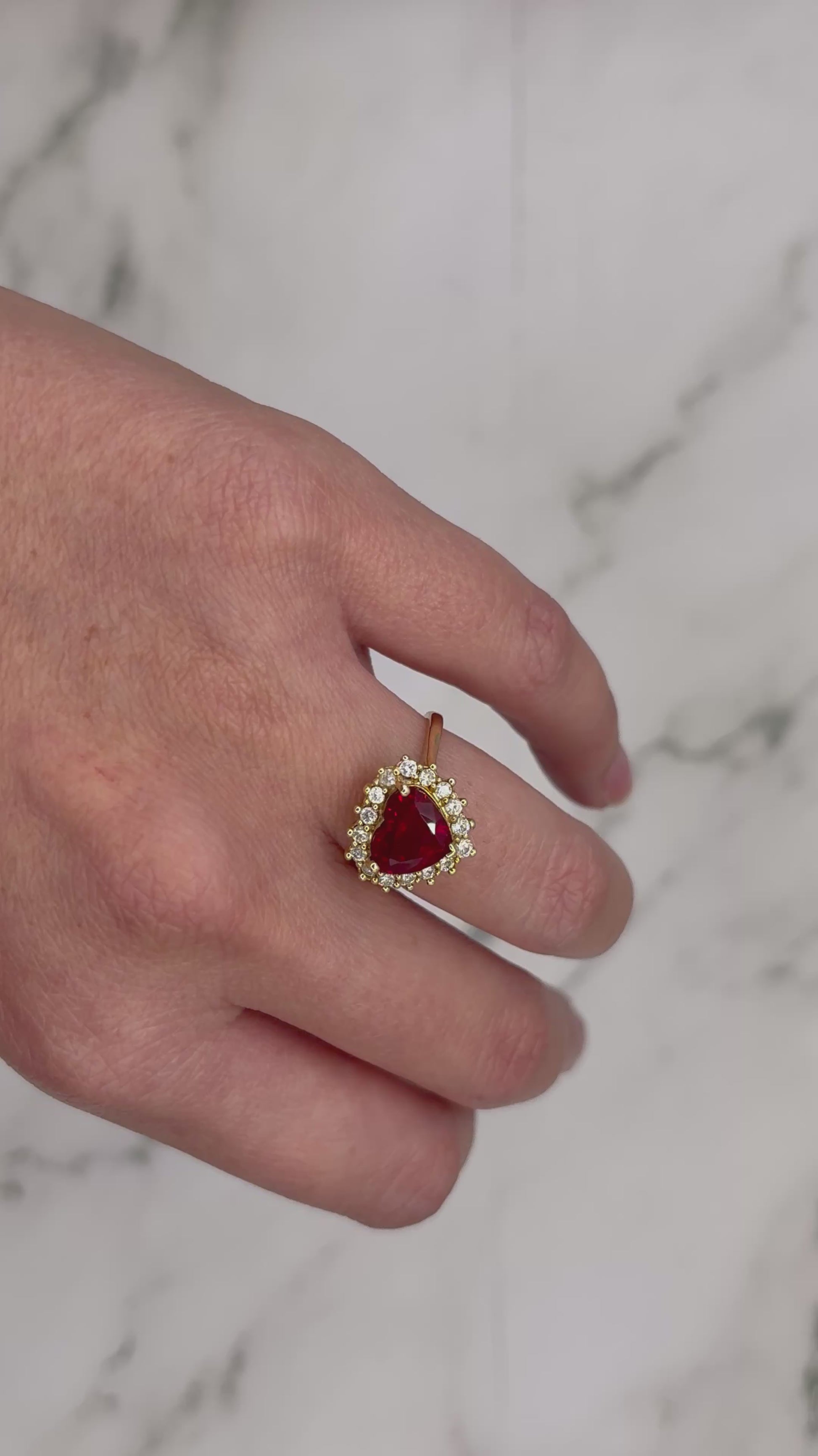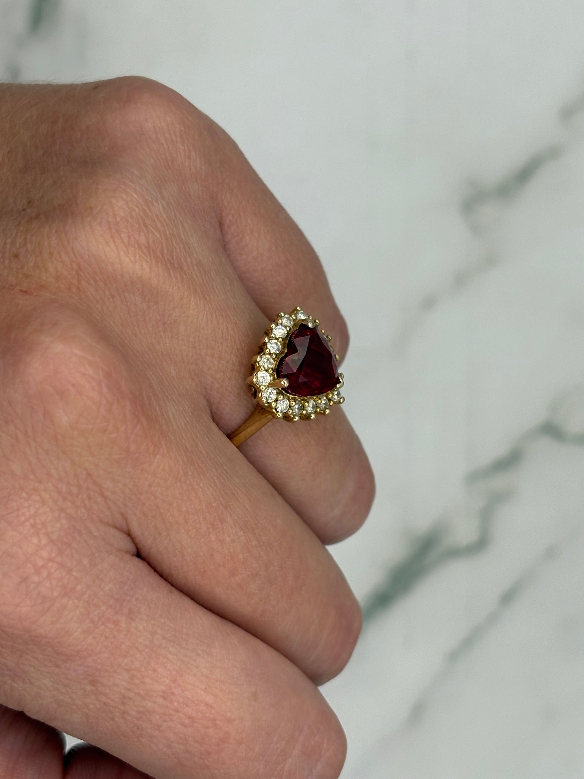 Solitario con rubí Oval de 4.6 Cts Sangre de pichón, glass filled en oro de 14k.