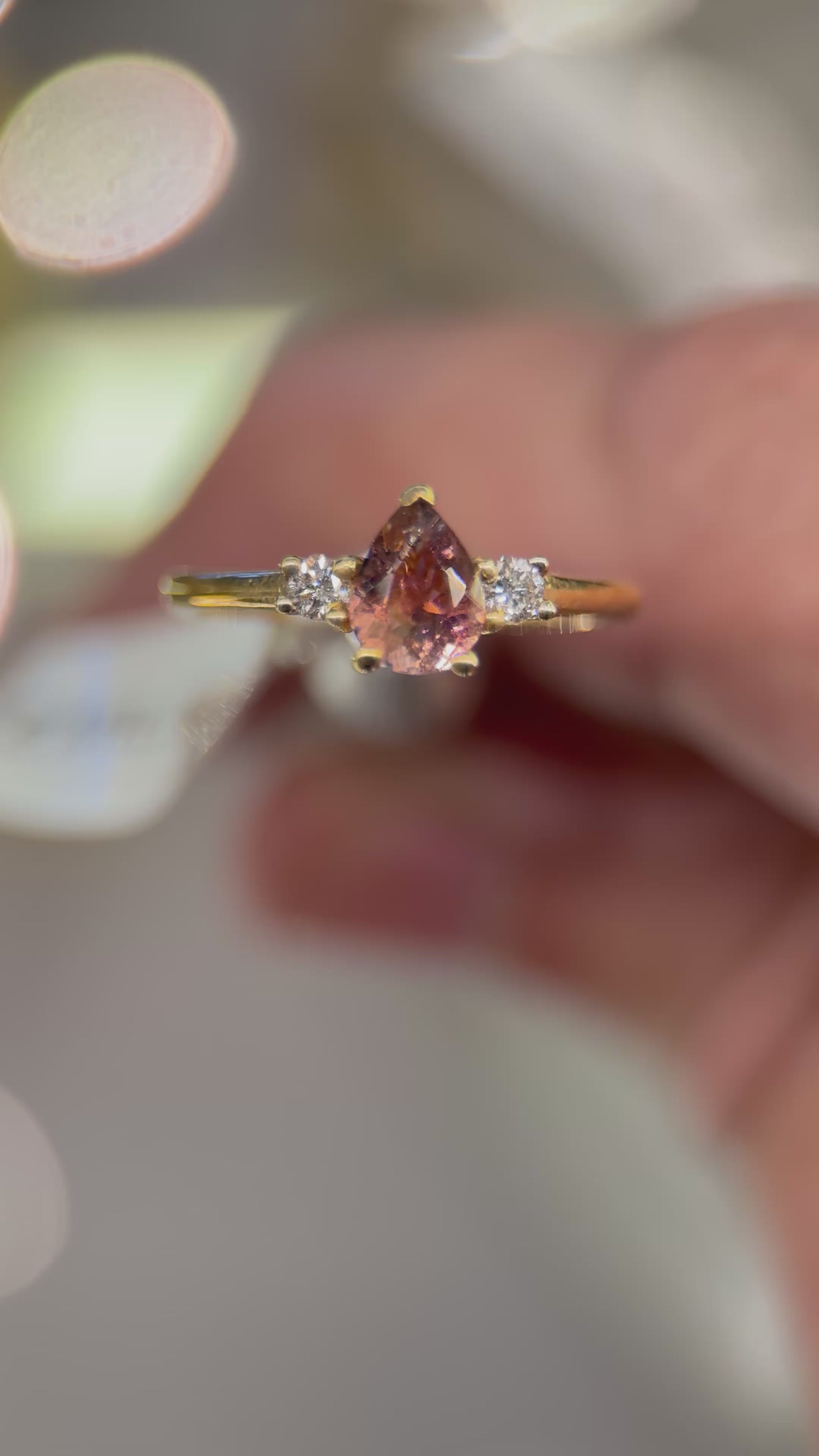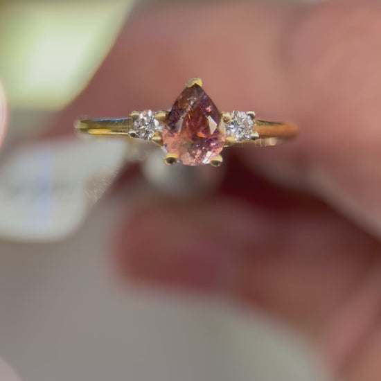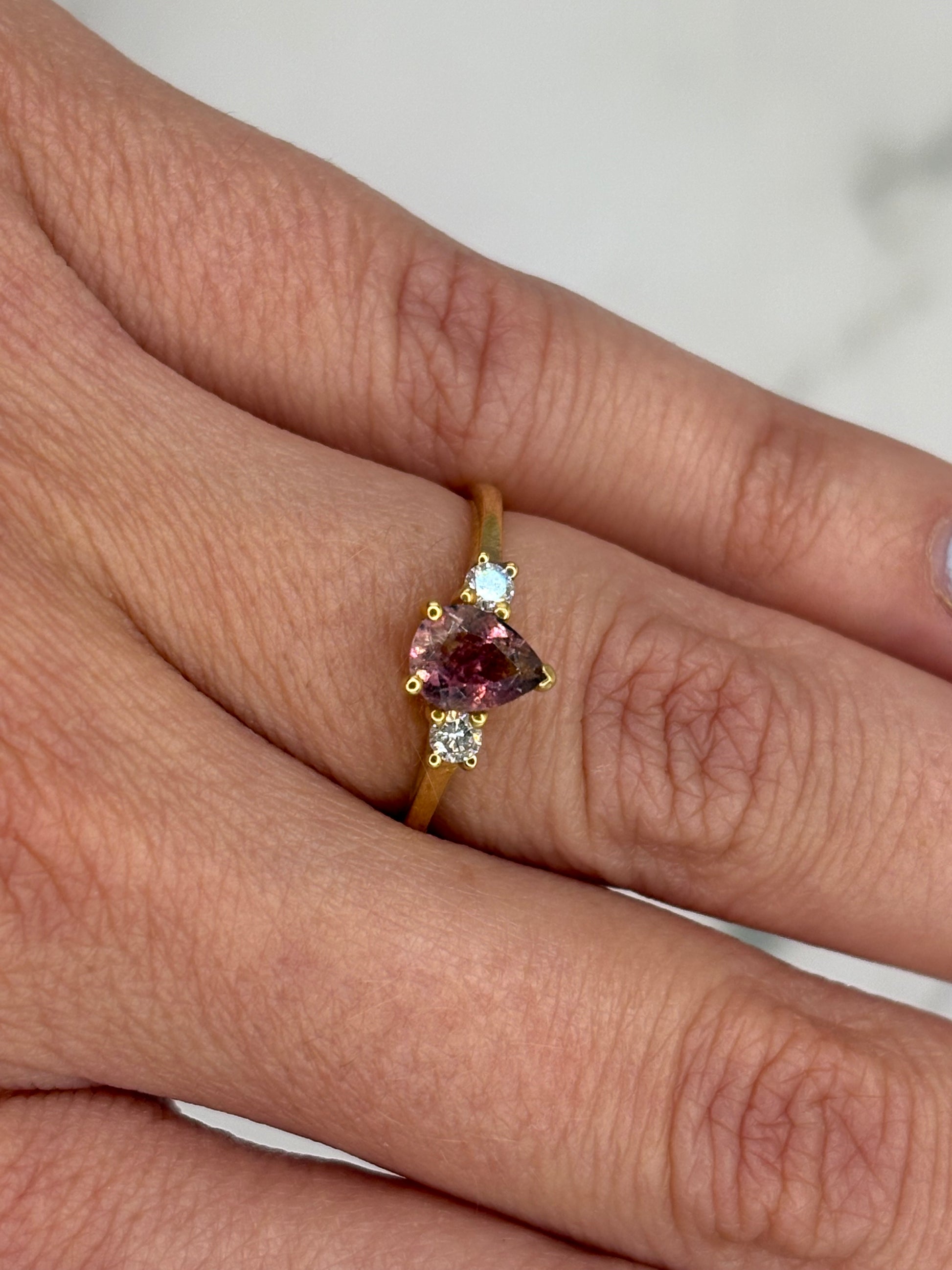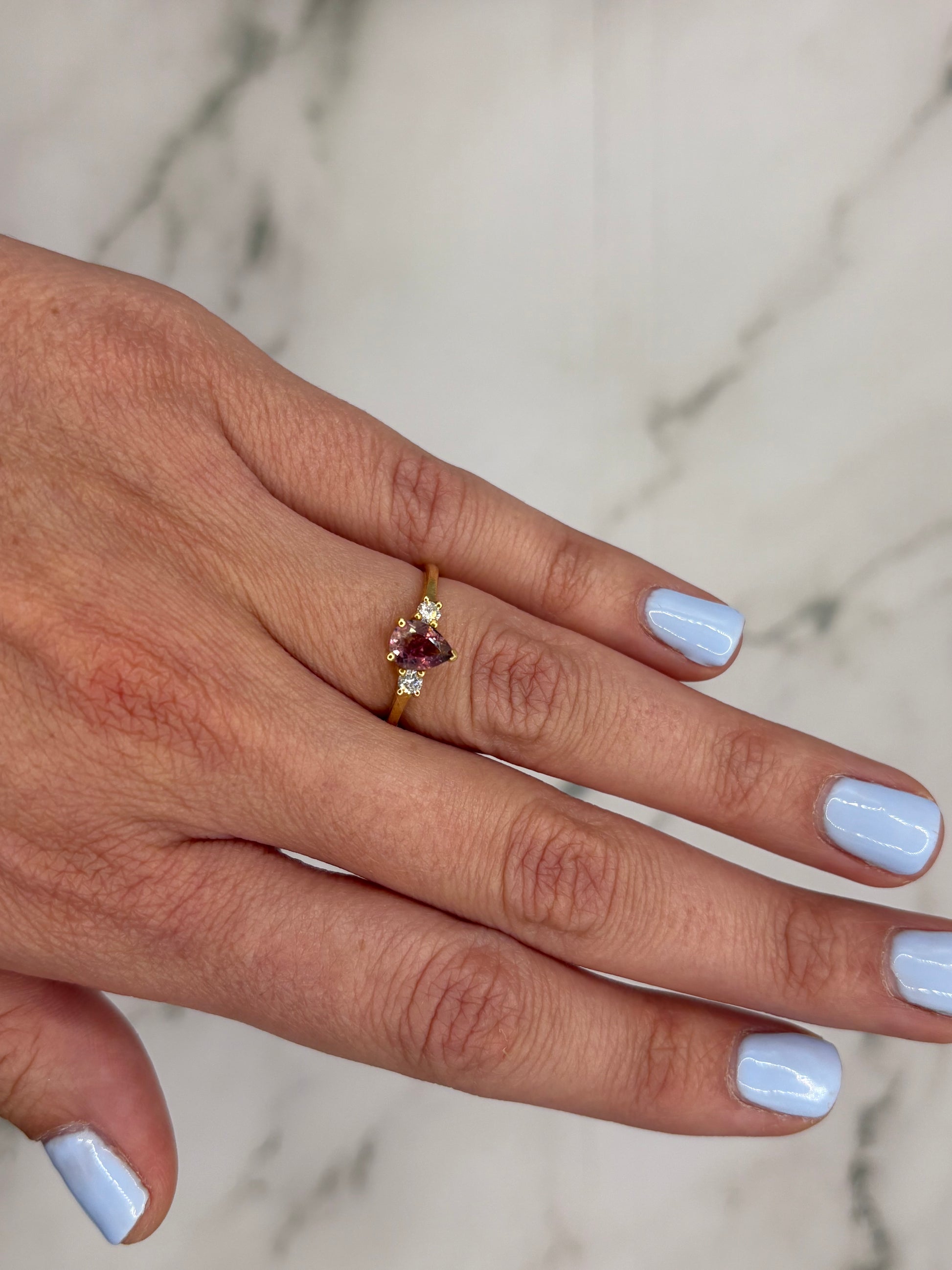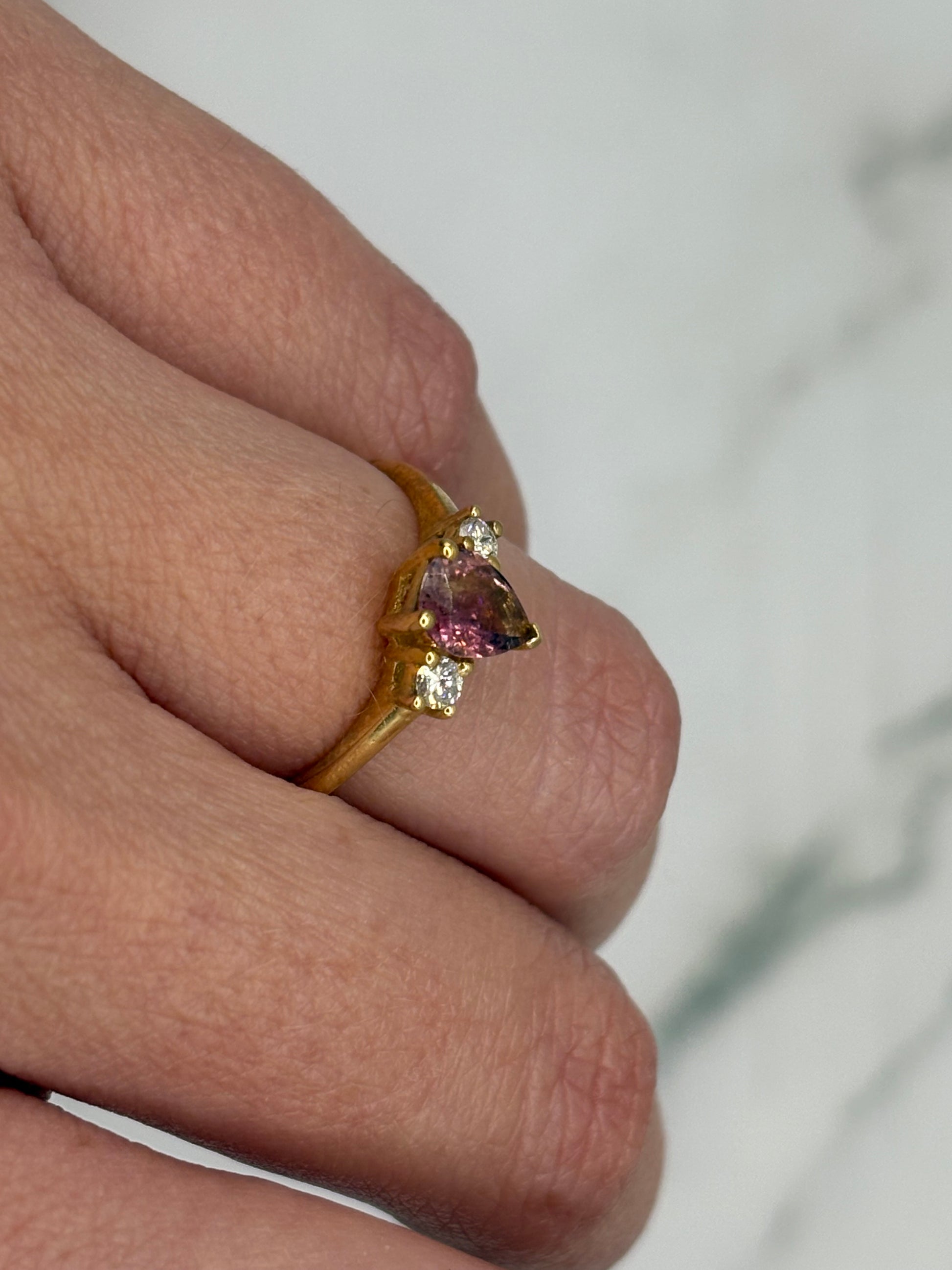 Turmalina degradada corte gota con ..10 Cts de diamante en oro de 14k.